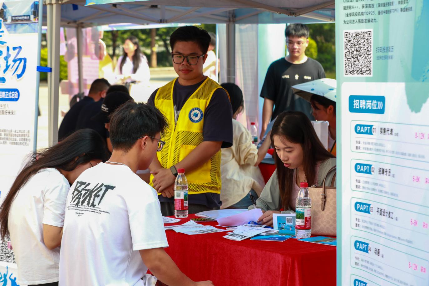 为提升校企对接效率,本次双选会创新推出“企业学生助理”机制,选拔优秀学生担任“就业服务专员”,全程参与企业招聘服务。这些学生助理提前对接参会企业,收集岗位需求、整理招聘流程,在双选会现场协助企业引导学生、解答咨询,搭建起企业与学生之间的“沟通桥梁”。这一举措不仅缩短了企业招聘周期,优化了企业招聘体验,更让学生在实践中深入了解企业招聘标准与行业需求,提升职业认知与沟通协调能力,进一步深化了学校与企业的产教融合,为后续校企合作奠定坚实基础。