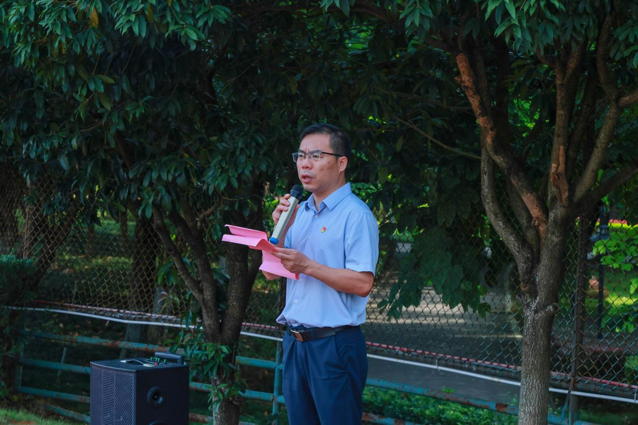 升旗仪式结束后,党委书记、督导专员金飞在国旗下讲授爱国主义微党课。他强调,2025年不仅是新中国成立76周年的重要时刻,也是中国人民抗日战争暨世界反法西斯战争胜利80周年,伟大的抗战精神是激励我们不断前进的强大动力。并向同学们提出三点希望:第一,要坚定理想信念,筑牢精神之基;第二,要勤于学习实践,锤炼过硬本领;第三,要砥砺品德修养,引领社会风尚。