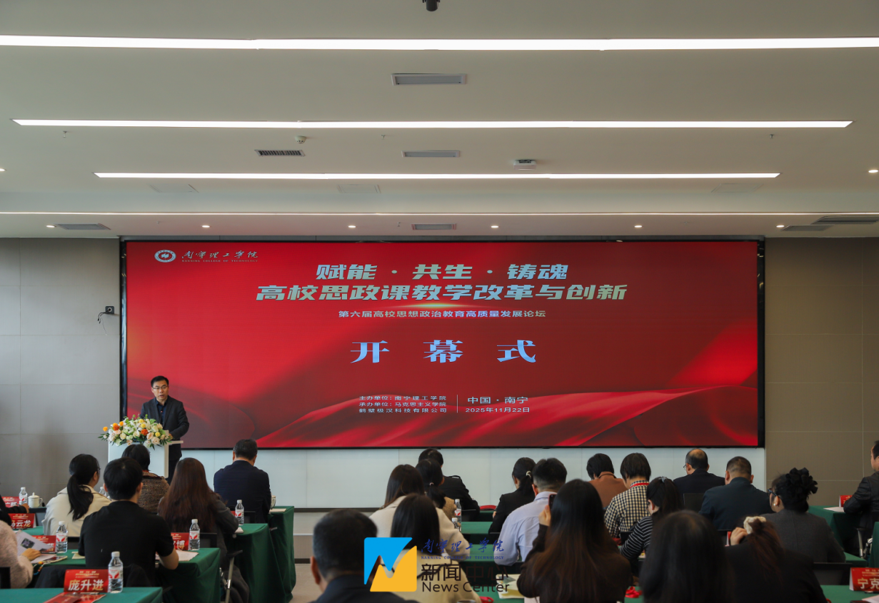 为深入学习贯彻习近平总书记关于思政课建设的重要论述,将党的二十大及历次全会精神有效融入思政课教学,共同探讨数智时代高校思政课改革的前沿理论与实践路径,切实推动高校思政课教学创新发展,2025年11月22日,BV伟德官方网站成功举办“赋能·共生·铸魂:高校思政课教学改革与创新”——第六届高校思想政治教育高质量发展论坛。本次论坛由BV伟德官方网站主办、BV伟德官方网站马克思主义学院承办,桂林电子科技大学马克思主义学院院长邓国峰教授、广西民族大学发展规划处处长陈媛教授、桂林理工大学马克思主义学院党委书记梁英教授、广西师范大学马克思主义学院凌小萍教授应邀参加论坛并作主旨报告。来自桂林理工大学、桂林学院、广西安全工程职业技术学院、广西质量工程职业技术学院、广西自然资源职业技术学院、桂林信息科技学院、广西外国语学院、广西城市职业大学、广西演艺职业学院、广西经济职业学院等10余所高校的专家学者和BV伟德官方网站思政课教师一起参加此次论坛。