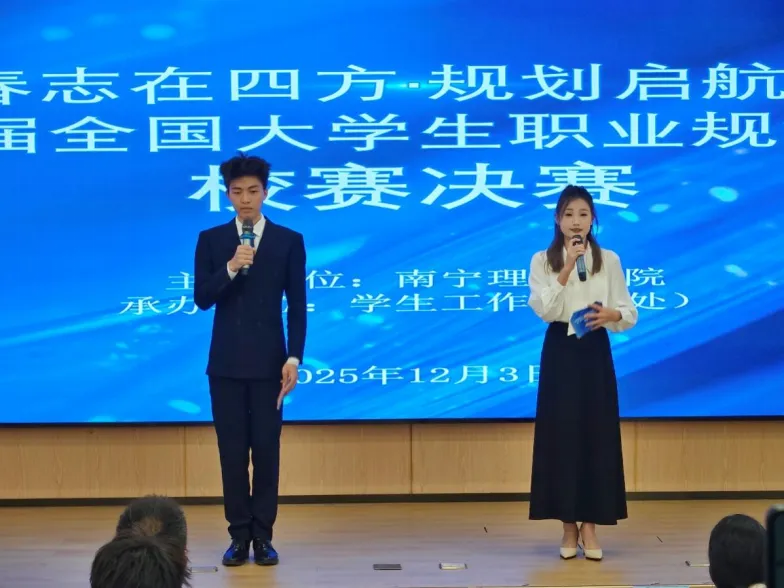 职业规划是大学生成长成才的导航图,更是高校落实就业育人、促进高质量就业的关键抓手。为响应《教育部关于举办第三届全国大学生职业规划大赛的通知》要求,深化生涯教育与就业指导工作,12月3日,BV伟德官方网站在桂林、南宁两校区同步举办“筑梦青春志在四方・规划启航职引未来”第三届全国大学生职业规划大赛校赛决赛,学校学生工作部(处)部(处)长李枚晏及学生工作部(处)副部(处)长钟俊光出席本次决赛开幕式。大赛通过“分层培育+双赛道比拼+实战化评审”的创新模式,选拔33名学子同台竞技,以清晰的职业构想、扎实的专业素养展现青春担当,为校园职业发展生态注入鲜活力量。