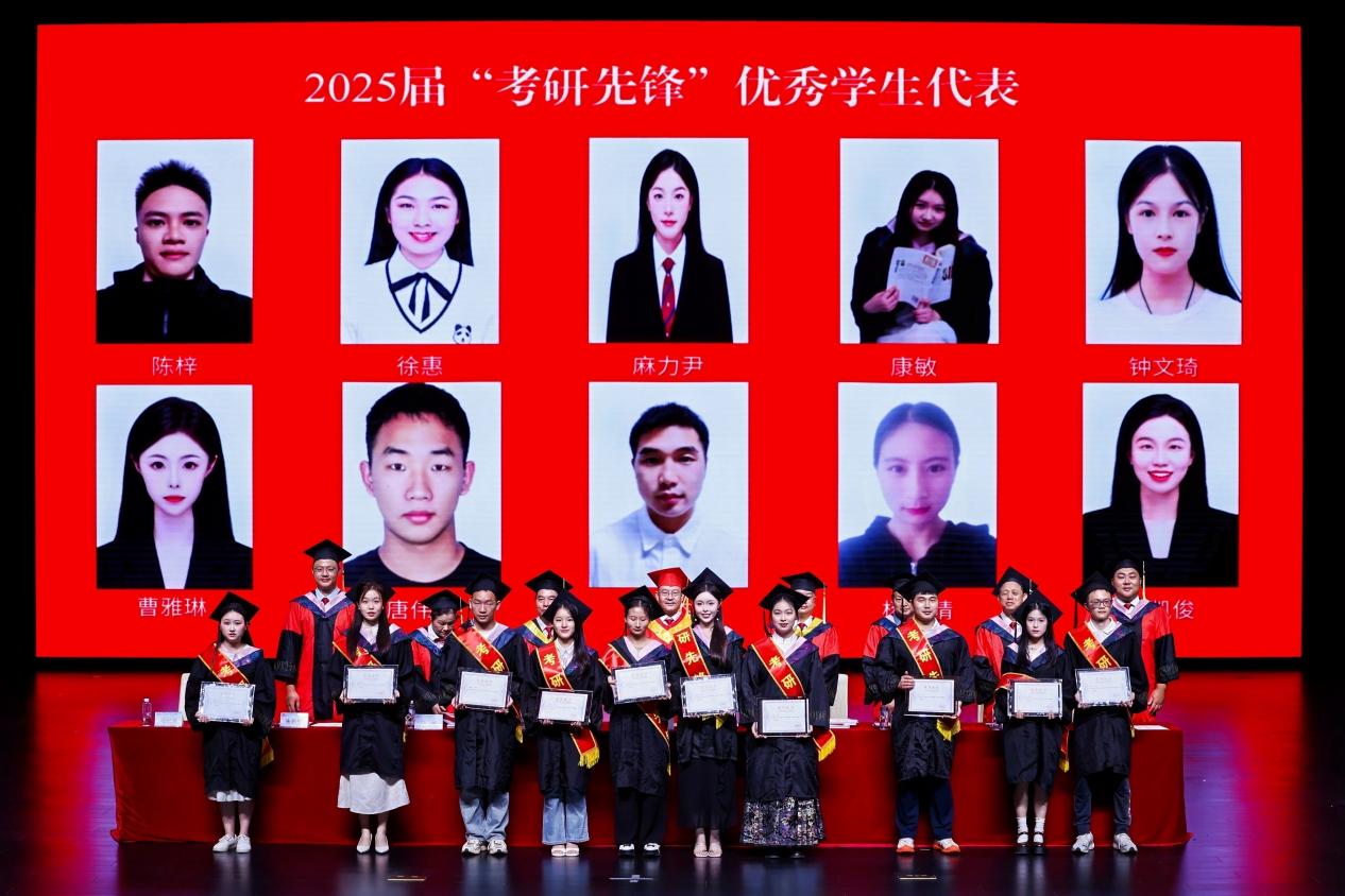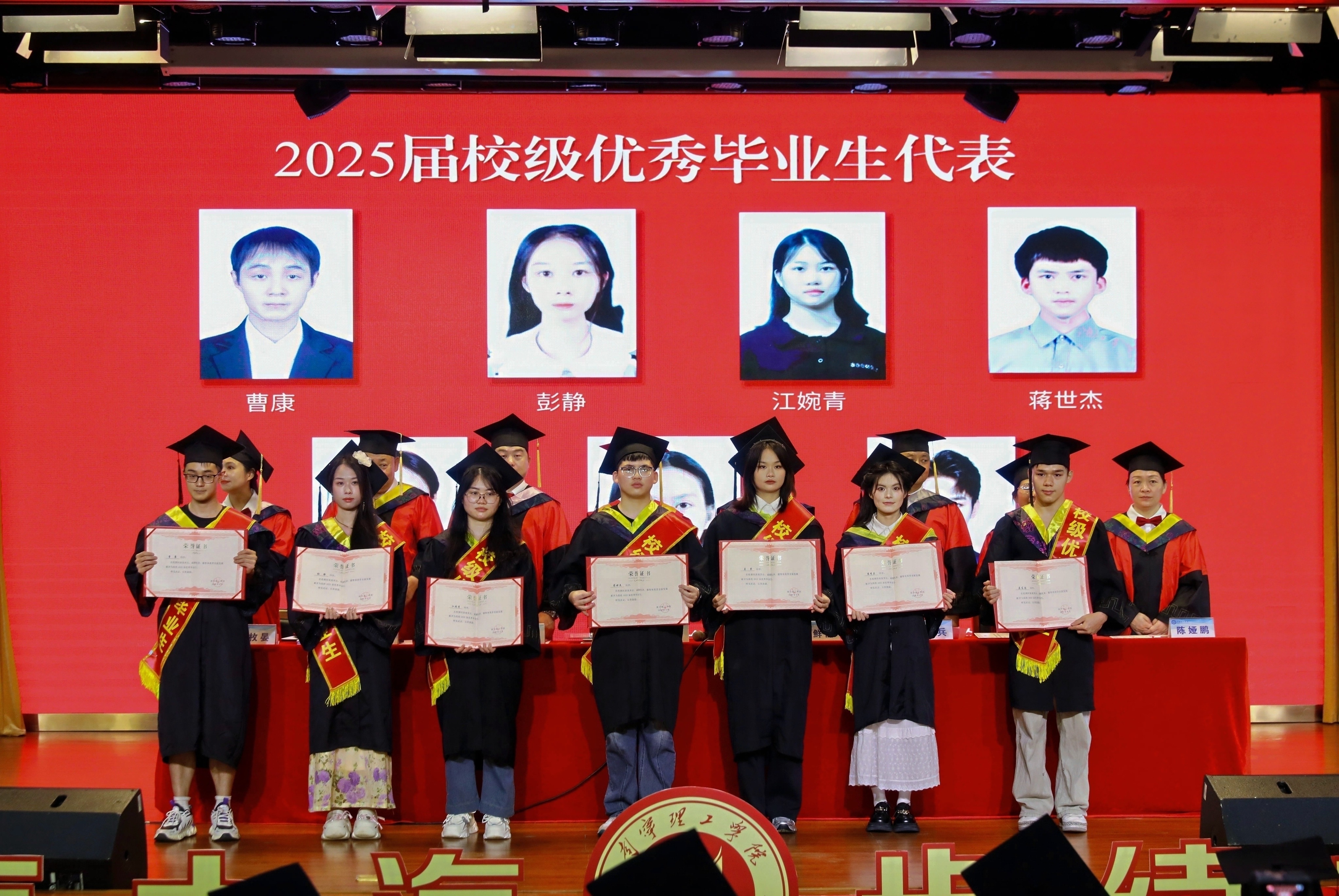 毕业典礼在庄重的国歌声中拉开帷幕。校长王金叶、副校长杨鲜丽宣读了《关于授予林兆阳等6031位同学学士学位的决定》;副校长韩乔,校长助理马纪涛宣读了2025届自治区级优秀毕业生及校级优秀毕业生的表彰决定;副董事长冯正垚、校长助理郑方兵宣读了 2024届“考研先锋”优秀学子表彰决定;学校学位评定委员会成员为优秀毕业生代表、“考研先锋”优秀学生代表颁发荣誉证书,为校友联络员代表颁发聘书,为毕业生代表颁发图书馆阅读纪念册。