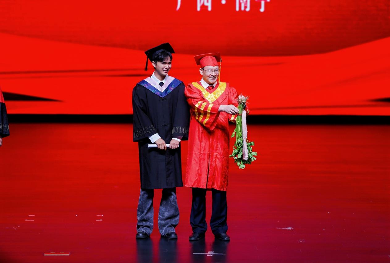 9时整,首先进行的是谢师礼,这是一场充满感恩与传承的礼赞。全体毕业生代表面向导师,深深鞠躬三次,分别感谢导师的悉心教导、关怀陪伴和殷切期望。导师代表随后送上毕业寄语,话语温暖真挚,如阳光照亮学生前路,激励他们坚守初心、追求卓越。此刻,感恩与传承交织,师生情谊升华。