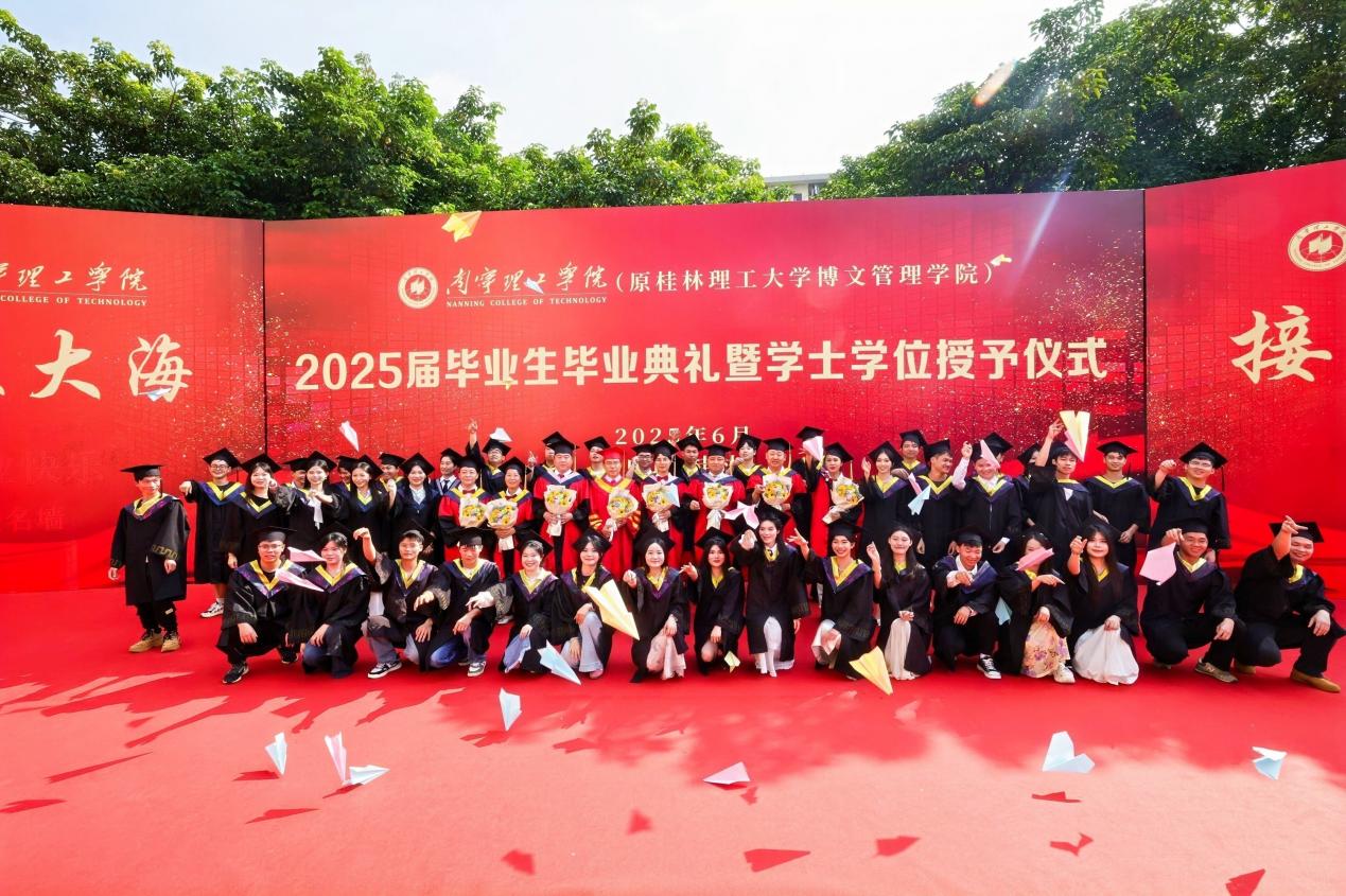 学生与导师齐聚签名墙前,手持纸飞机,在 “放飞梦想,接力前行” 的口号声中,共同放飞纸飞机。纸飞机在空中飞舞,带着毕业生的梦想与希望飞向远方。放飞结束后,师生合影,镜头定格下幸福笑容与美好回忆,记录下这一充满温情的瞬间。