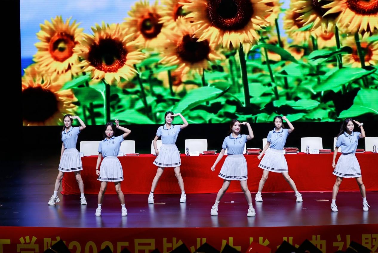 在师生祝福环节,会场播放毕业视频呈现毕业生寄语、学弟学妹祝福、毕业班合照及校园风景,唤起师生对大学生活的美好回忆。随后的快闪合唱和艺术团舞蹈将现场气氛推向高潮。伴着歌声,毕业生向导师献花送祝福,表达感恩之情。师恩难忘,情谊绵长,同学们将带着导师们的美好希冀,在未来的道路上步步生花。