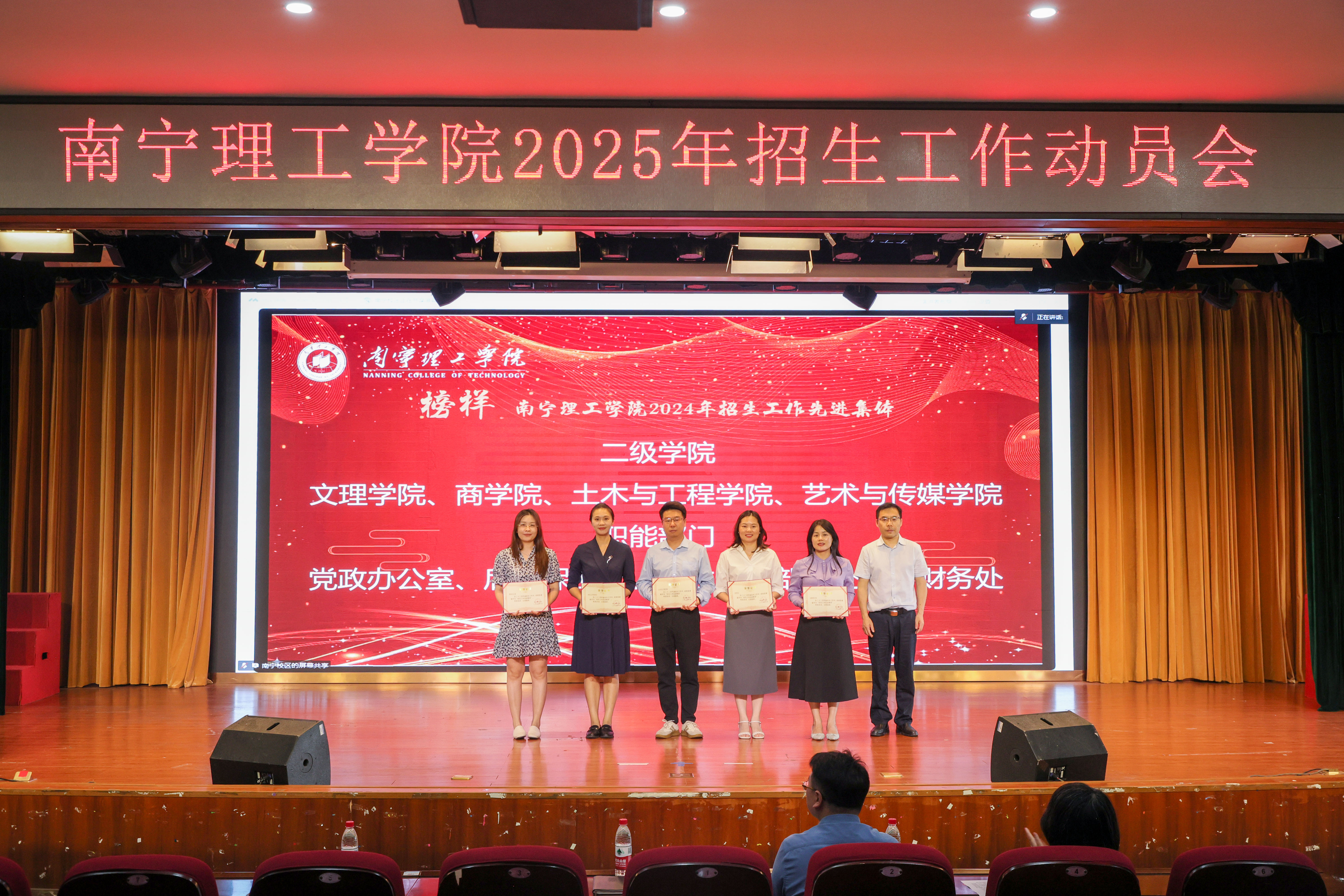 6月12日,学校2025年招生工作动员会于南宁校区东盟大剧院和桂林雁山校区1626报告厅同步举行。学校领导、全体教职工参加了本次会议。会议以“全员同心、接续奋斗、共同推动学校生源规模质量实现新突破”为主题,总结成绩、表彰先进、部署任务。会议由校长助理郑方兵主持。