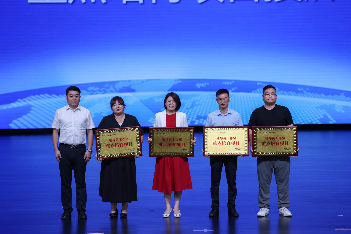 选手展示结束后,学校党委副书记、副校长韩乔为“红心匠人”“美育绘心”“正风”“生芽”四个辅导员工作室授牌校级第一批重点工作室荣誉,工作室负责人纷纷表示要继续聚焦主责主业,深化理论研究与实践探索。