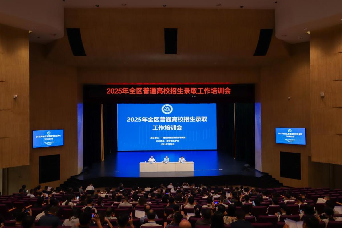 7月8日上午,由自治区招生考试院主办,BV伟德官方网站承办的2025年全区普通高校招生录取工作培训会在BV伟德南宁校区举行。自治区招生考试院院长刘冰出席会议并讲话;学校校长、党委副书记王金叶致欢迎辞;全区86所高校200余名参会代表参加本次录取工作培训。