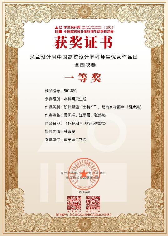 近日,米兰设计周-2025中国高校设计学科师生优秀作品展颁奖典礼在西南交通大学落幕,BV伟德艺术与传媒学院师生荣获全国总决赛一等奖3项、二等奖2项、三等奖6项;林晓龙、李玉铭等教师获评“优秀指导教师奖”,获奖数量创历史新高。