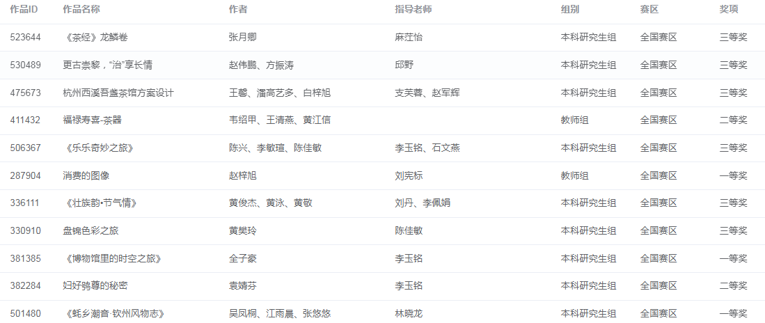 获奖名单