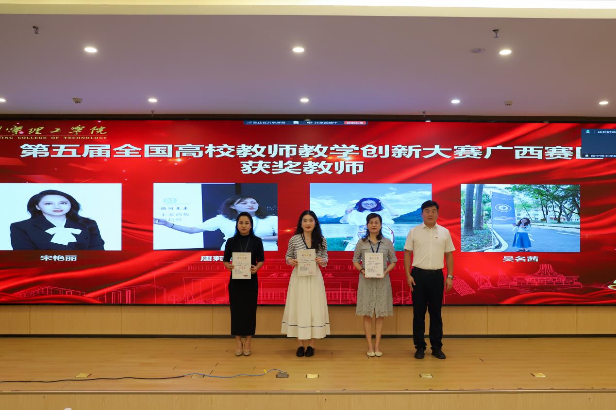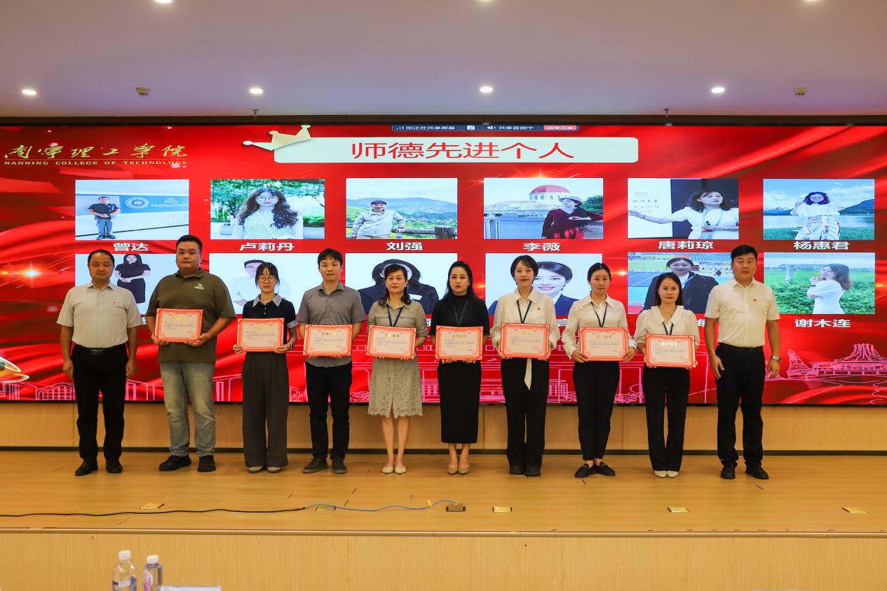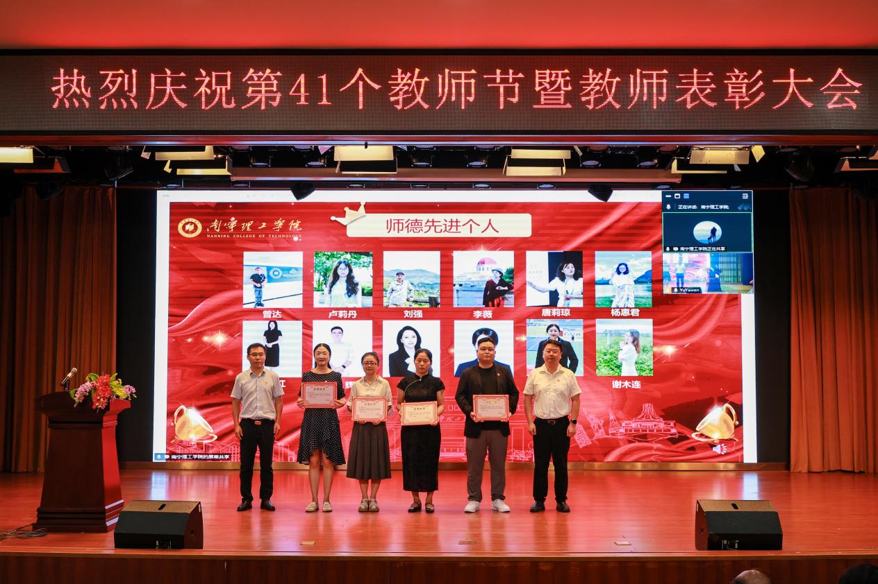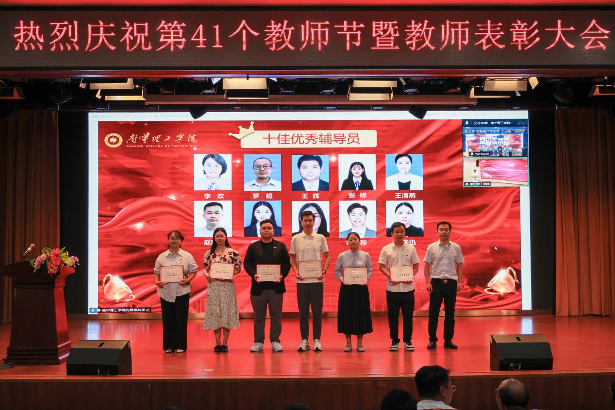 副校长杨鲜丽宣读《关于表彰2024-2025学年教学系列评先评优先进个人及先进集体的决定》;副校长、党委副书记韩乔宣读《关于表彰BV伟德官方网站2024-2025学年度“十佳优秀辅导员”的决定》;纪委书记、校长助理马纪涛宣读《关于表彰2024-2025学年科技先进个人的决定》;校长助理郑方兵宣读《广西高等教育学会关于公布第五届全国高校教师教学创新大赛广西赛区获奖结果的通知》和《广西壮族自治区教育厅关于公布新一轮自治区级实验教学中心建设名单的通知》;党委书记、督导专员金飞宣读《关于表彰2024-2025学年度“师德先进个人”的决定》。与会领导为获奖教师颁发荣誉证书,感谢他们为学校各项事业发展做出的贡献。