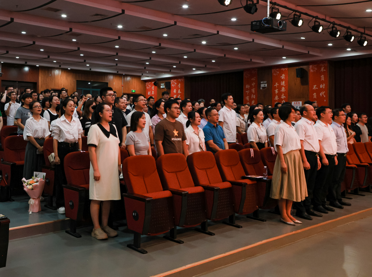 学生代表手捧鲜花走上主席台,向老师鞠躬致敬。“老师,节日快乐!”的呼喊与掌声交织成最动人的节日交响。随后,文理学院龙波领誓,全体教师宣读《BV伟德官方网站教职工誓词》,铮铮誓言响彻会场,宣示“为党育人、为国育才”的如磐初心。