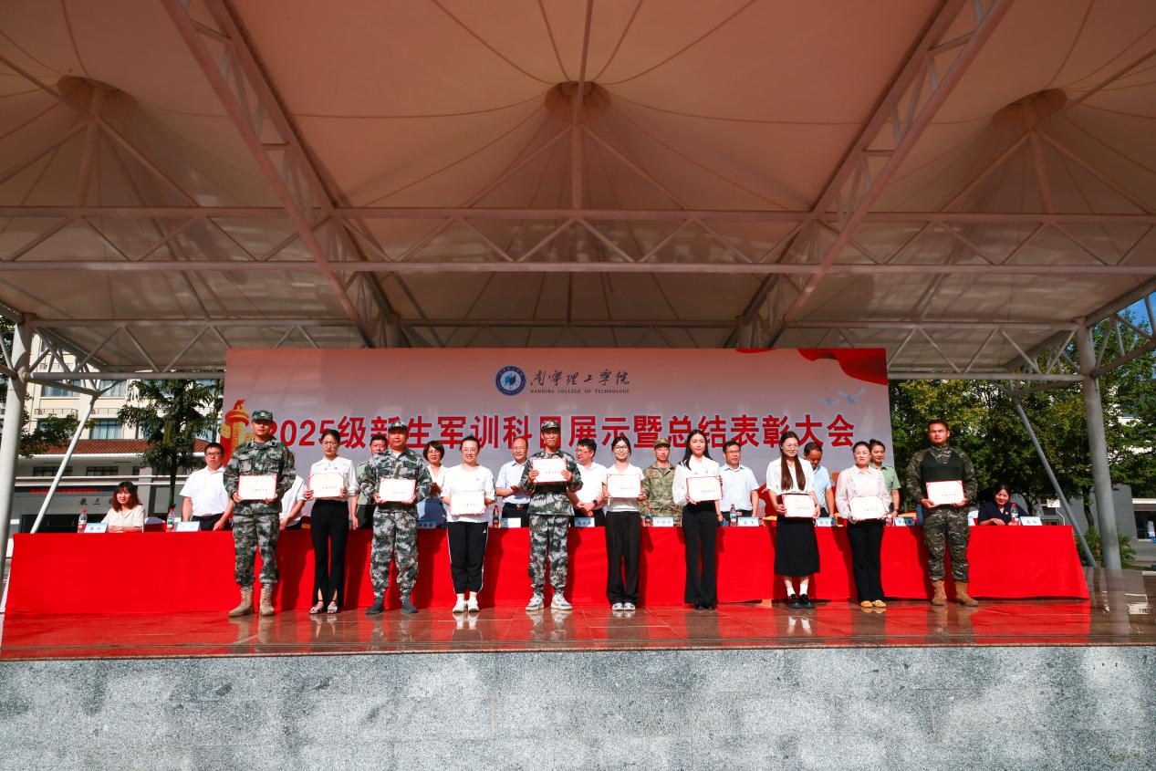 汇演结束后,校长助理郑方兵宣读了《BV伟德官方网站关于表彰桂林校区2025级新生军训先进集体和先进个人的决定》。与会领导为优秀学员、优秀指导员、优秀连队颁奖。