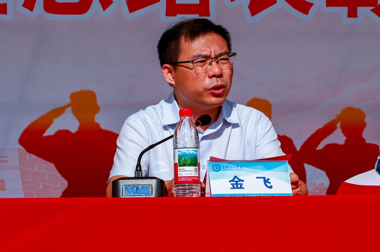 学校党委书记、督导专员金飞对军训工作进行了全面总结。他充分肯定了军训的成果,要求学生把军训过程中培养起来的顽强意志、优良作风、组织纪律观念、团结协作精神传承下去,把军训过程中激发起来的爱党爱国的热忱发扬光大,珍惜大学时光,团结进取、砥砺成材,努力成长为德智体美劳全面发展的社会主义建设者和接班人。
