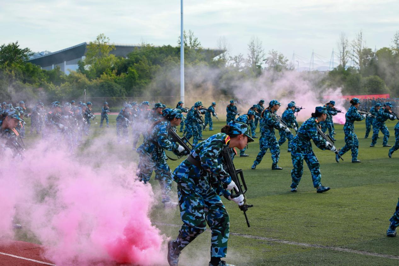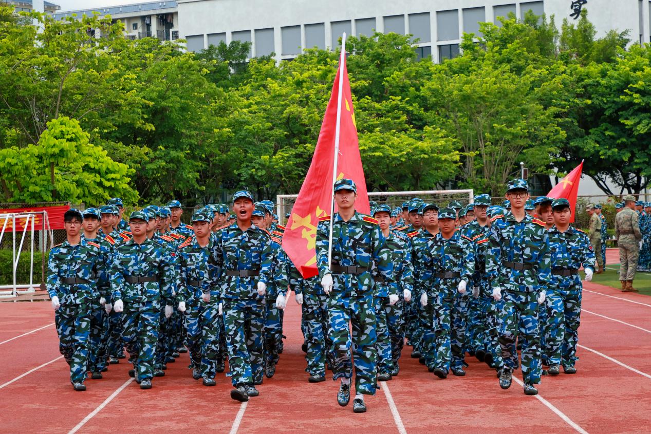 大会在庄严的国歌声中拉开序幕。2025级新生伴随着《中国人民解放军进行曲》激昂节奏,精神抖擞,步伐铿锵地走过检阅台,参训学生挺拔的军姿和整齐的队列,充分展示了军训的成果,展现了昂扬的斗志和蓬勃的活力。