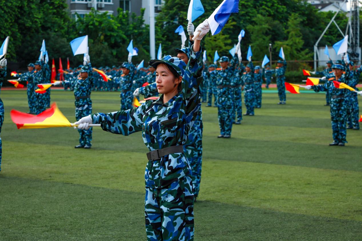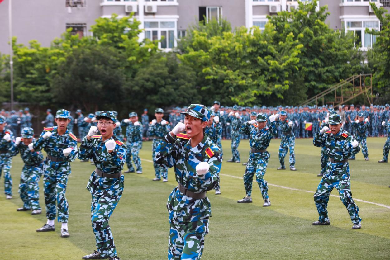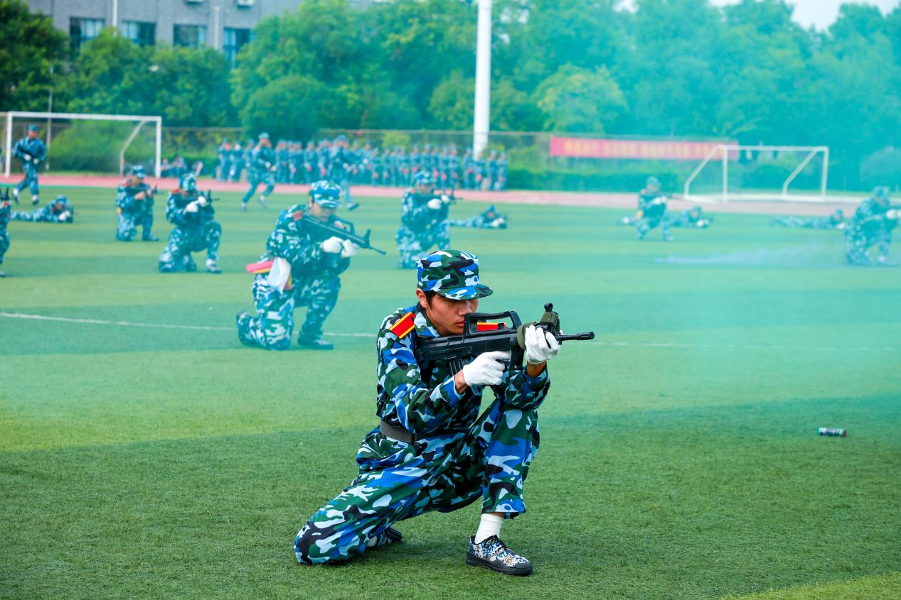 分列式结束后,参训学生演示了刺杀操、格斗术、战术变化、旗语、匕首操、战术运动方队等课目训练成果。少年们化身为战士,战术动作行云流水,每一个指令精准无误,每一次行动默契十足,彰显着“淬火成钢、青春飞扬”的豪情,展现着“强国有我,请党放心”的担当。