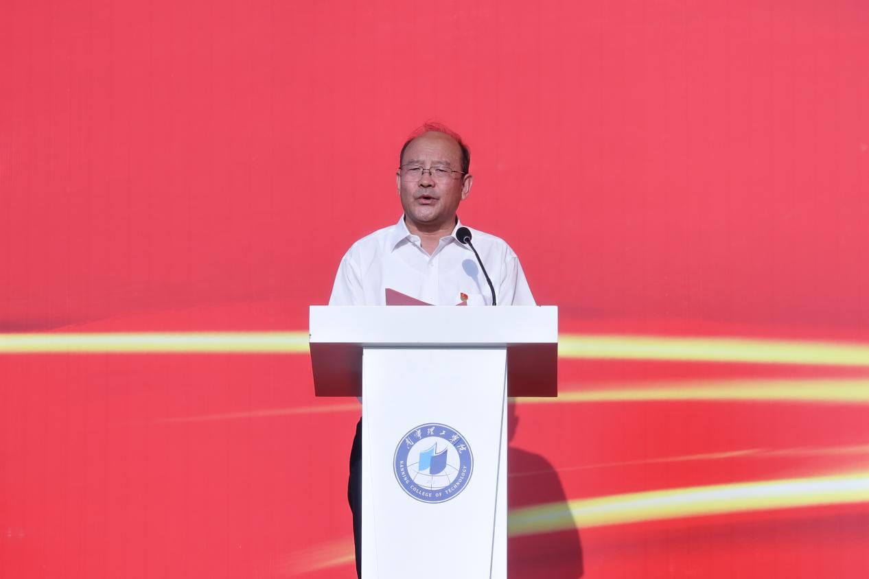 校长王金叶代表全校师生向新同学表示热烈欢迎,并介绍了学校的办学发展情况和育人特色。他寄语新生,在民族复兴的关键时刻,要胸怀家国情怀,锤炼专业技能,涵养高尚品德,积极投身社会实践,以‘逢山开路、遇水搭桥’的乐观之心,努力成为德智体美劳全面发展的社会主义建设者和接班人,为推进中国式现代化贡献青春力量。