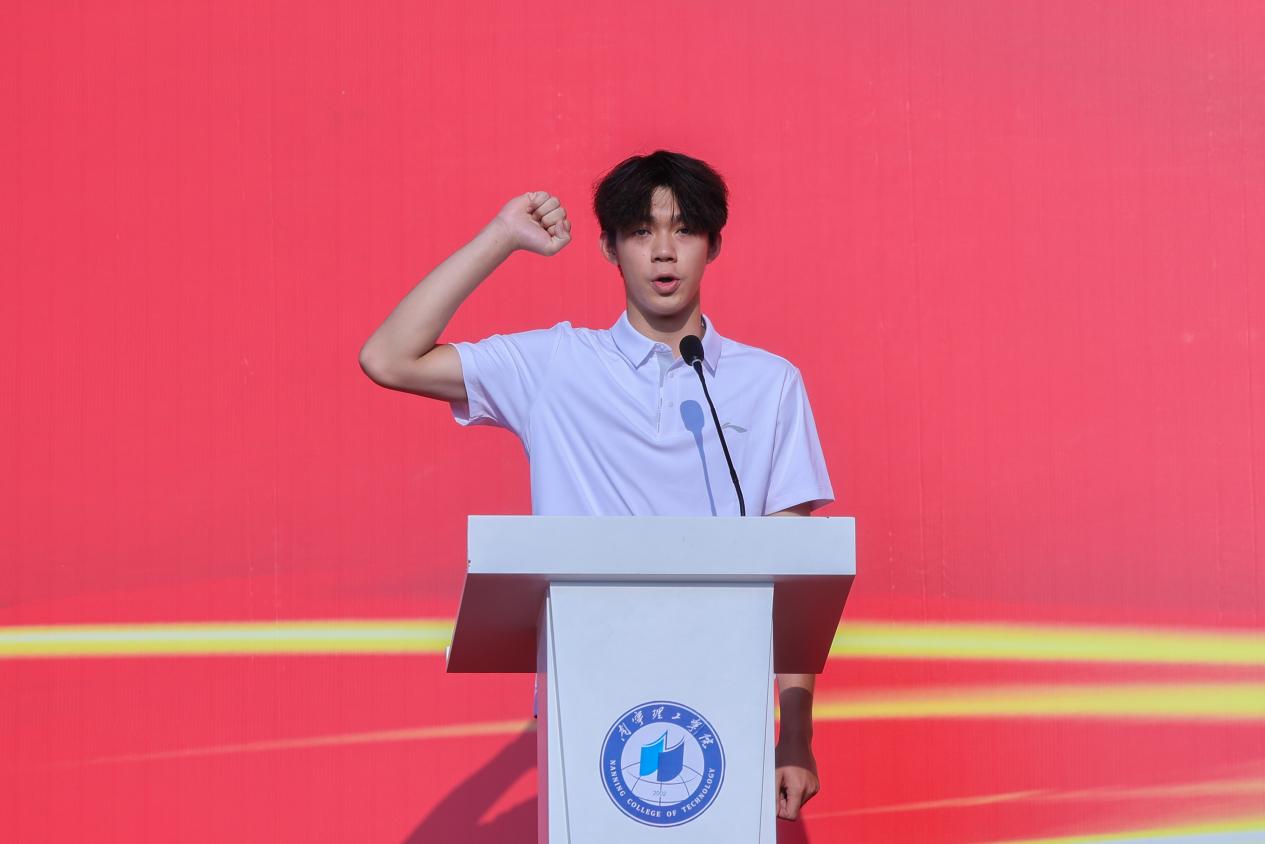 新生代表,商学院商务菁英班李泽卓轩同学以“以青春之名,赴星辰之约”为题发言,表示将以“再试一次”的执着精神扎根专业,拓宽视野,勇于实践,立志在国际舞台上发出中国青年之声,让个人梦想与民族复兴同频共振。