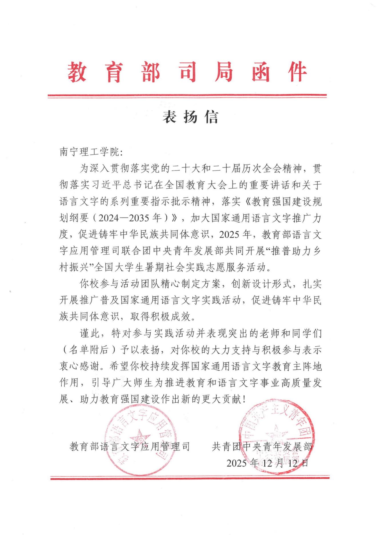 教育部与团中央在表扬信中充分肯定了团队的实践成果,并对BV伟德的支持工作表示感谢。此次表彰既是对团队的高度认可,也是对BV伟德实践育人工作的积极肯定。