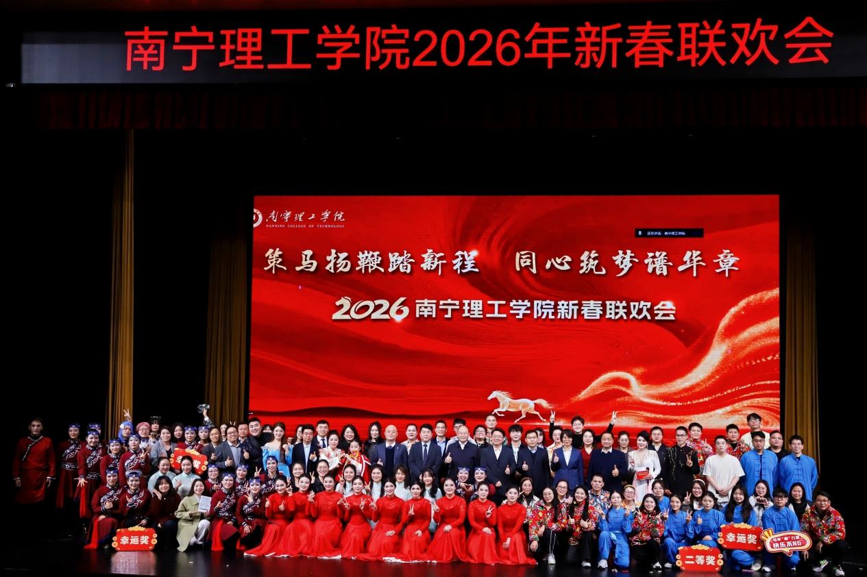 第三篇章昂扬展望崭新征程。南宁机关分工会的舞蹈《快乐崇拜》动感十足,充满了时尚与活力;桂林机关一、机关二分工会的舞蹈《策马奔腾》气势磅礴,完美呼应了联欢会主题,展现了昂扬向上、一往无前的精神风貌。最后,联欢会在文理学院温馨动人的歌曲《把福带回家》中圆满落下帷幕,歌声承载着对新年的美好祈愿,将“福”气送达每一位师生心中。