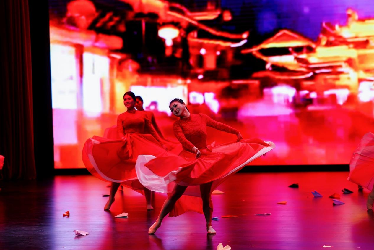 联欢会在土木与工程学院活力四射的开场舞《动感空间》中拉开帷幕,瞬间点燃了全场热情。随后,演出围绕“丰碑·回响”“灯火·人间”“乘风·启航”三大篇章徐徐展开。