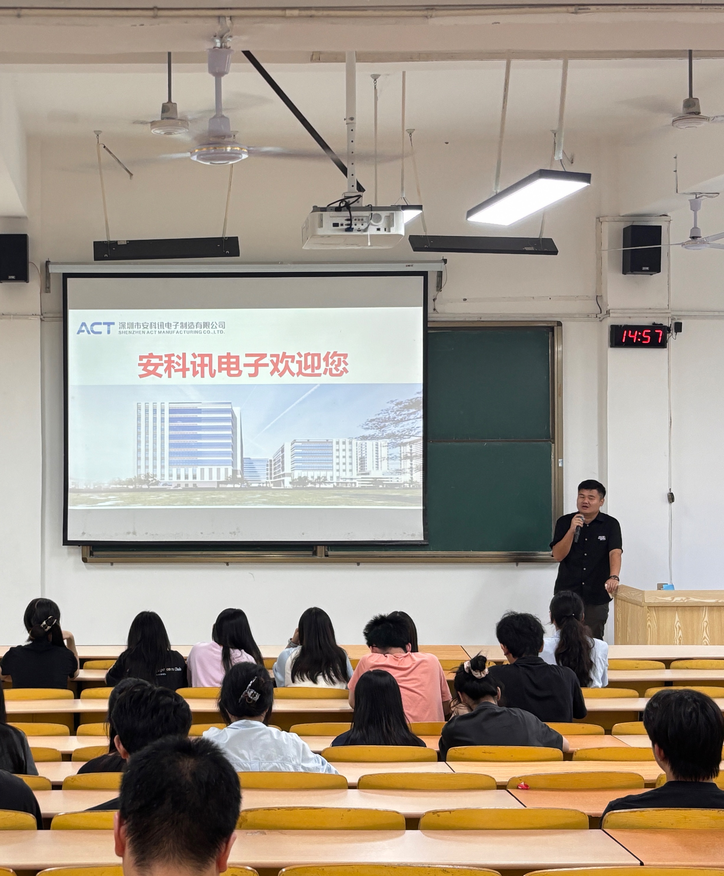 宣讲会上,广西桂林领益智造有限公司围绕企业在智能智造、精密电子元件研发领域的发展历程、行业地位及核心业务展开介绍。该公司业务覆盖消费电子、汽车电子、新能源等多个领域,负责人详细解读了岗位任职要求、工作内容及发展路径,并结合企业案例展示了完善的薪资福利体系与清晰的晋升通道,让同学们对精密制造行业的职业前景有了直观认知。随后,深圳安科讯公司负责人聚焦企业在通信设备研发、物联网技术应用领域的创新成果与业务布局进行分享。该公司的产品广泛应用于5G通信、智能终端、工业互联等领域,此次面向参会专业毕业生提供了嵌入式开发、网络运维、通信系统测试、电子信息工程技术等岗位。在互动答疑环节,毕业生们结合自身职业规划,围绕岗位工作地点、实习安排、专业技能适配、职业发展空间等问题踊跃提问。两家企业代表耐心细致地逐一解答,分享了实用的学习建议与职业发展经验。毕业班辅导员也主动与企业负责人沟通,深入了解企业招聘周期、用人标准及后续合作意向,为后续精准推送岗位信息、开展就业指导收集关键信息。
