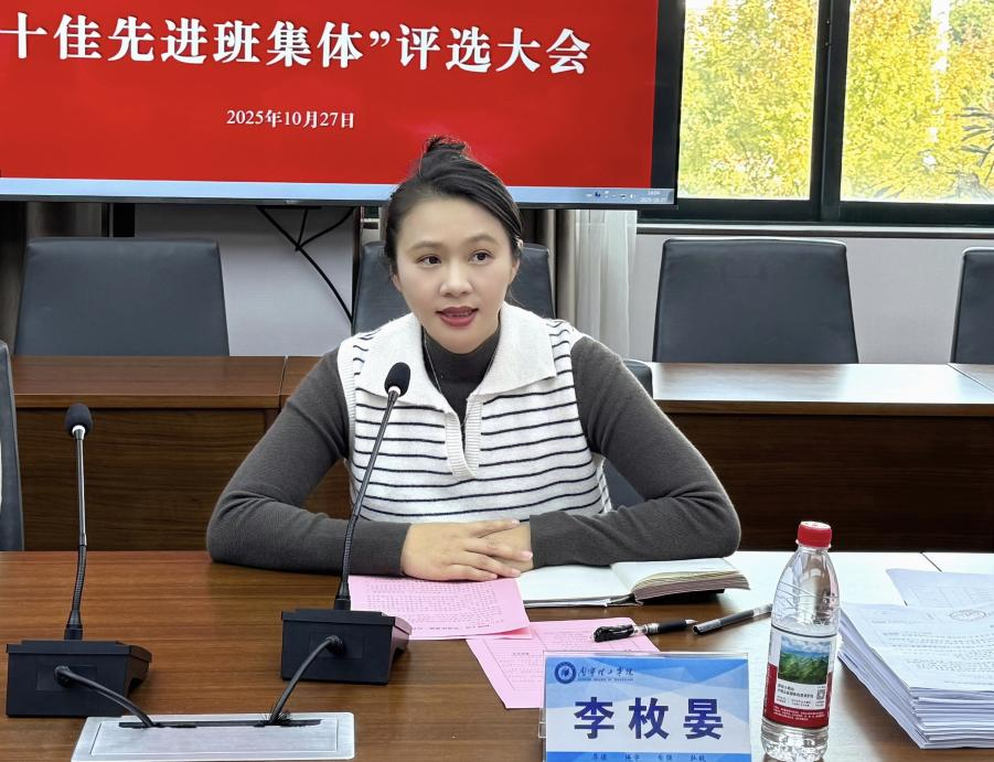 评选开始,学生工作部(处)部(处)长李枚晏对此次评选作致辞发言。她首先对一学年来全校各班级建设取得的扎实成效和广大学生骨干饱满的工作热情和勤勉务实的工作作风表示肯定。并指出,开展评优工作既是对大家过去努力的认可与表彰,更是希望通过树立榜样,激励更多班级和同学见贤思齐,共同营造良好的育人氛围。随后,针对此次评选以及后续工作,李枚晏处长提出三点希望:一是珍视评选过程,促进共建共进。各班级把重点放在学习借鉴与工作创新上,真正实现“以评促建、以评促强”。二是夯实专业根基,提升综合素养。广大学生要把“读万卷书”与“行万里路”结合起来,努力成为基础厚、能力强的时代新人。三是扛起骨干责任,展现青年担当。学生骨干们要始终有服务同学的初心,在奉献集体中成就自我,在担当作为中闪耀青春。