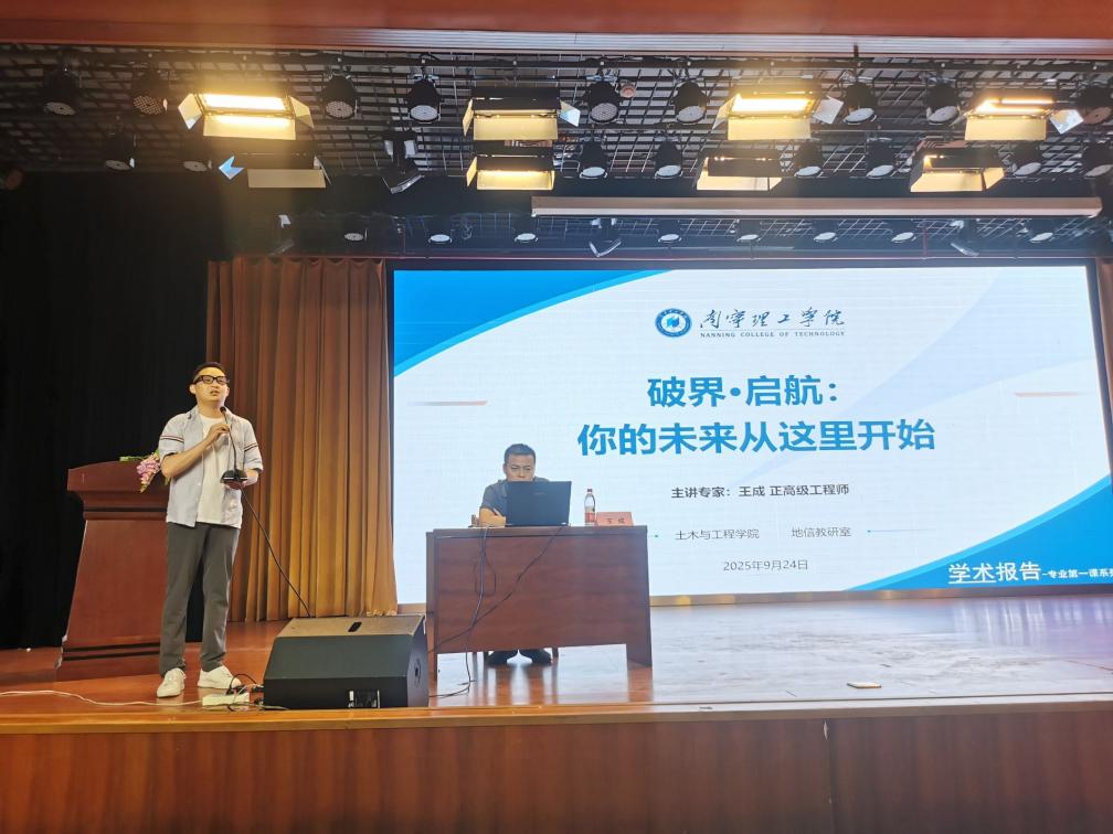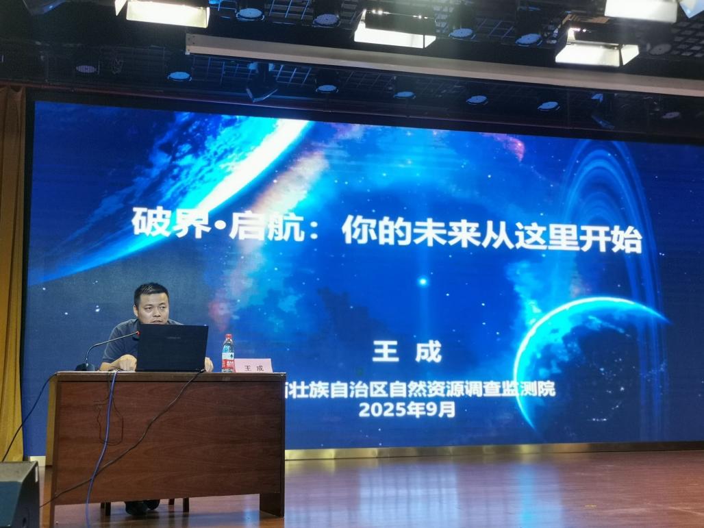 2025 年 9 月 24 日下午,在鲁班智能建造产业学院大力支持下,BV伟德官方网站鲁班智能建造产业学院在1626报告厅开展了“破界・启航:你的未来从这里开始” 地理信息科学专业开学第一课活动,本次活动以 “破界・启航:你的未来从这里开始” 为主题,特邀广西壮族自治区自然资源调查监测院自然资源政策和国土空间规划科科长、正高级工程师、国家注册测绘师王成担任主讲人,2025 级地理信息科学专业与遥感专业全体新生及地信教研室全体教师齐聚现场,共同开启专业学习的启蒙之旅。