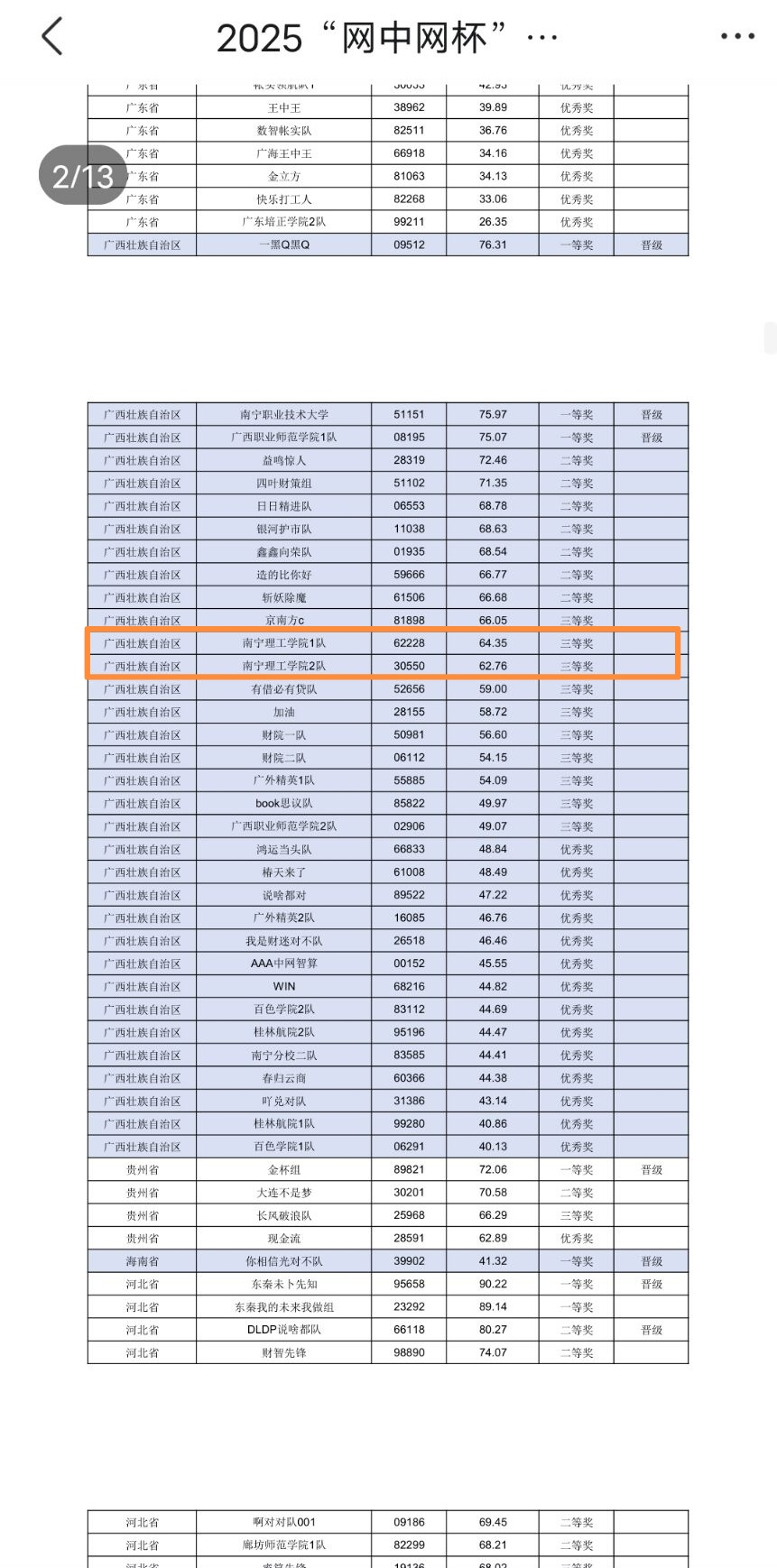 (图1 广西区赛排名)