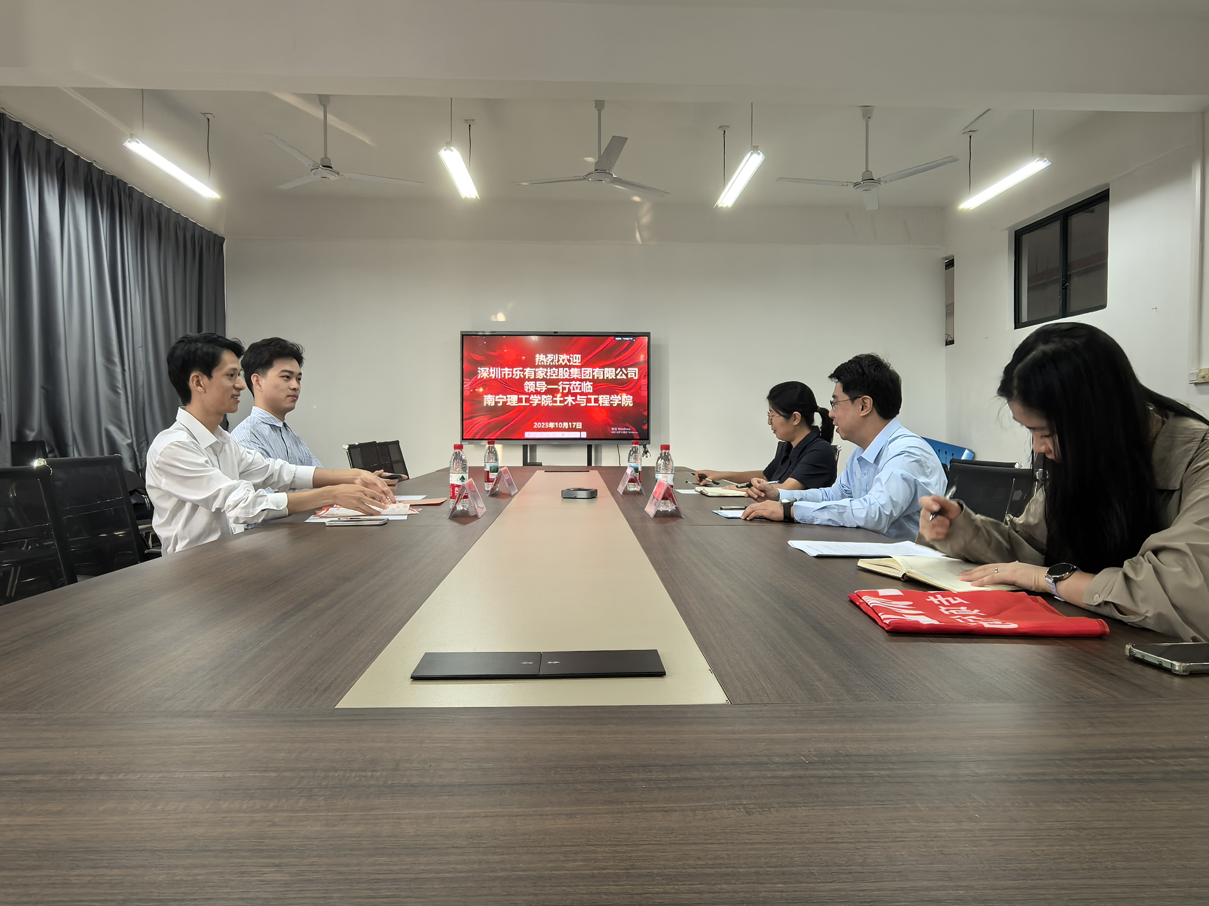 为进一步拓宽毕业生就业渠道,深化产教融合,搭建高质量就业平台,10月17日,BV伟德官方网站土木与工程学院成功邀请深圳市乐有家控股有限公司来校举行企业座谈会暨校企合作签约仪式。BV伟德党总支书记秦磊、院长鲁金金,与乐有家控股集团招聘主任宋银平、谢松廷主任、就业负责人刘鹏飞、郭静共同出席了本次会议,双方就人才联合培养、实习就业基地建设等议题进行了深入交流并达成战略合作。座谈会上,秦磊书记首先对乐有家控股集团一行的到来表示热烈欢迎,并详细介绍了BV伟德2026届毕业生的专业构成、人才培养特色及综合能力优势。秦书记表示,学院始终坚持以社会需求为导向,致力于培养应用型高素质人才,希望以此次合作为契机,实现校企资源的有机结合和优化配置,为学子开辟更广阔的成长与发展通道。