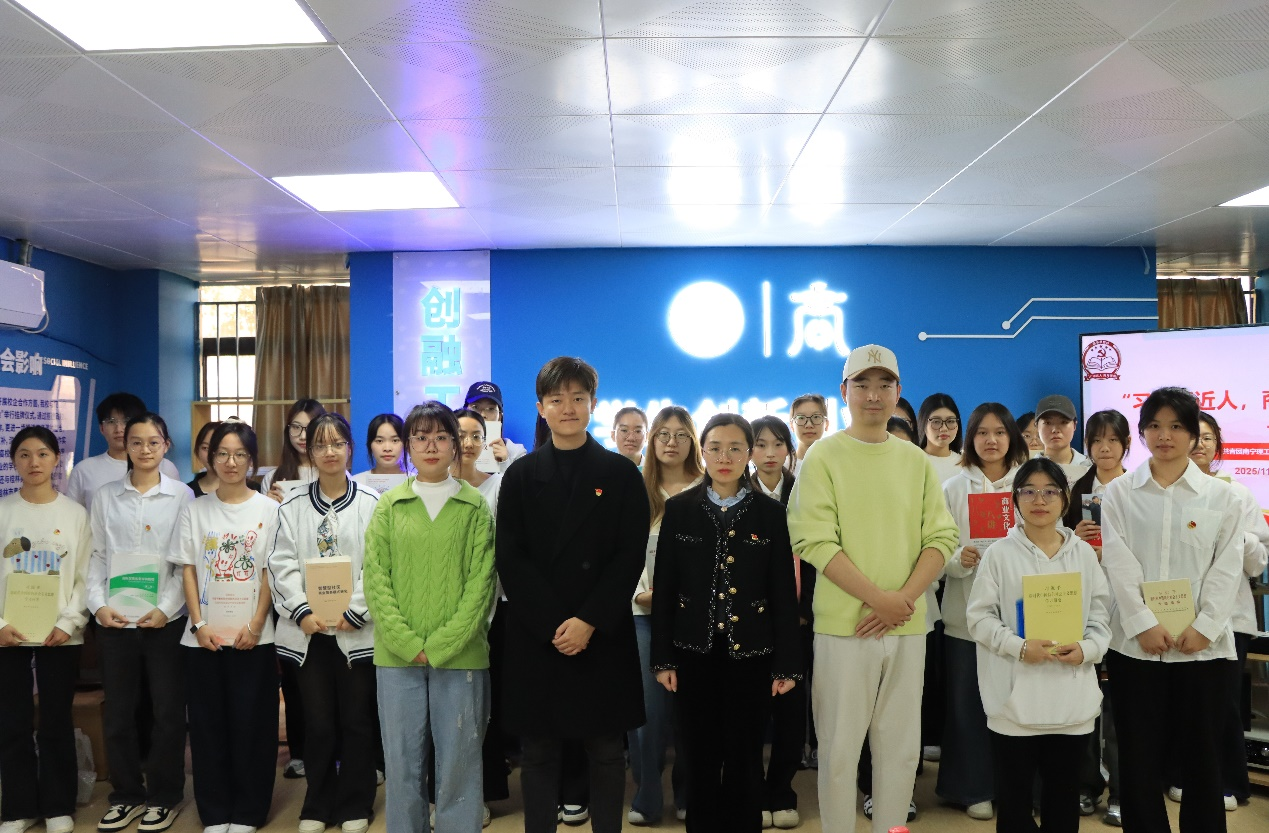 为深化新时代党的创新理论与商科人才培养融合,商学院于11月27日在一站式服务中心成功举办首届商学文化节系列活动——“习”语近人,商海领航读书思享会。本次活动通过党课引领、导师荐读、学子畅谈三大有机衔接的环节,为青年马克思主义者培养工程学员搭建贯通理论根基、专业纵深与未来视野的思想赋能平台。