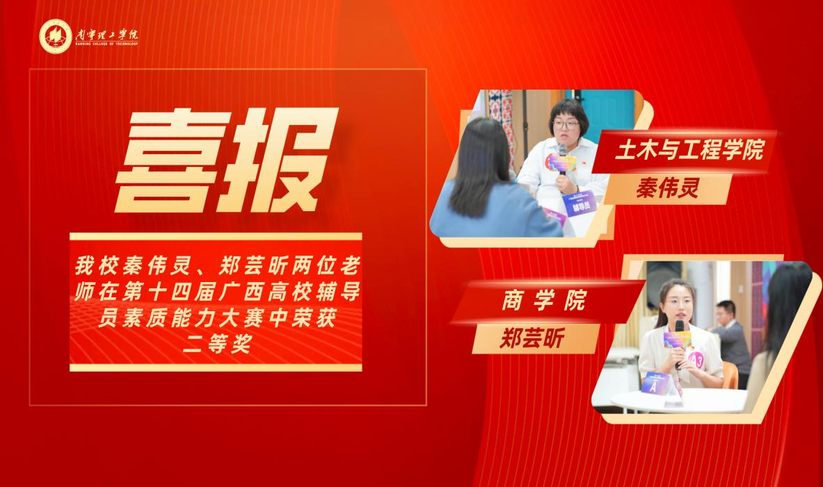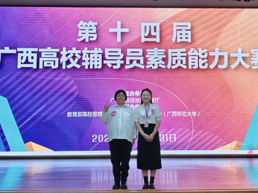 10月29日—31日,由广西壮族自治区教育厅主办、教育部高校思想政治工作队伍培训研修中心(广西师范大学)承办的第十四届广西高校辅导员素质能力大赛在桂林圆满举行。BV伟德选派参赛的秦伟灵、郑芸昕两位老师凭借扎实的理论功底、过硬的职业能力和出色的现场发挥,在比赛中表现优异,均斩获此次大赛二等奖。