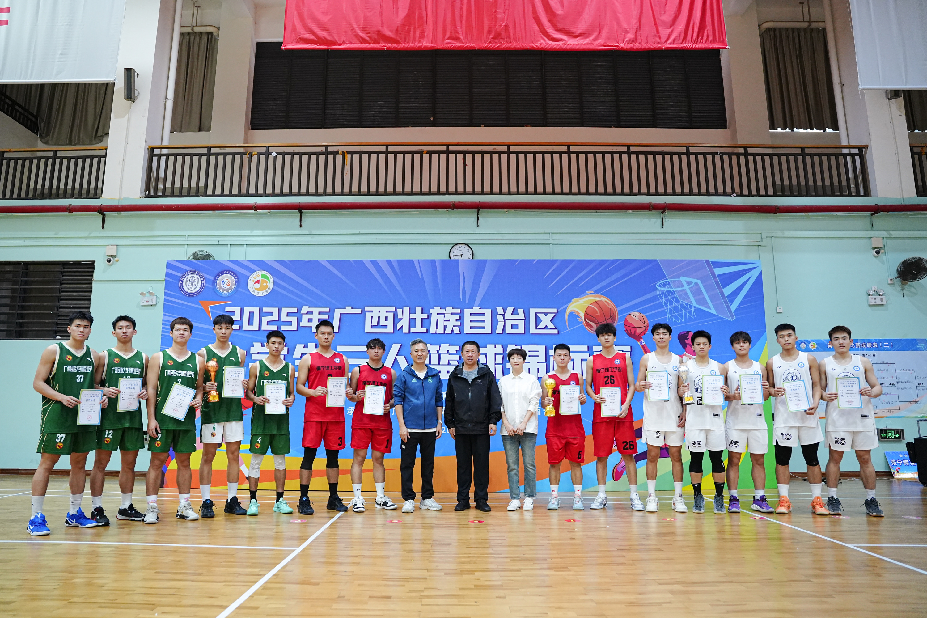11月8日-9日,15日-16日,2025年广西壮族自治区大学生三人篮球锦标赛在广西艺术学院相思湖校区举行,本次赛事BV伟德共派出三支队伍参赛,分别荣获男子体育专业甲组冠军、男子体育专业甲组第五名和普通本科组第六名的优异成绩!本次赛事汇聚全区高校68支队伍,是全区最高水平的大学生三人篮球赛事,也是BV伟德首次参赛并获得该项目冠军!