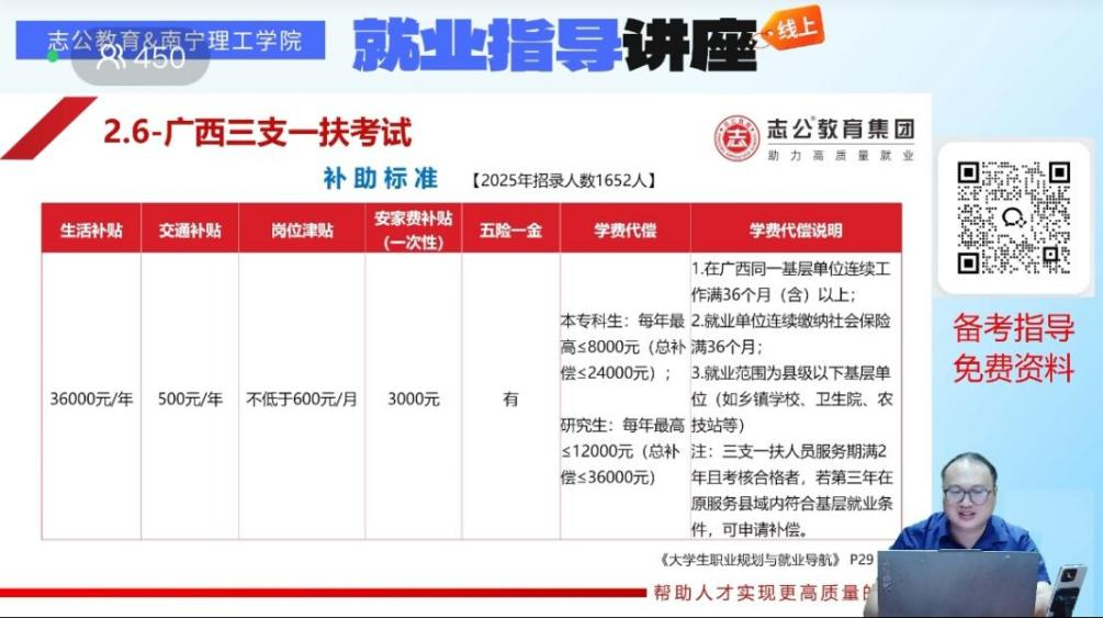 答疑解惑环节中,兰老师围绕就业政策、职业发展、备考资料等热点问题逐一回应,重点介绍了“三支一扶”“西部计划”等基层项目的具体情况,鼓励同学们积极投身基层,在实践锻炼中成长成才。