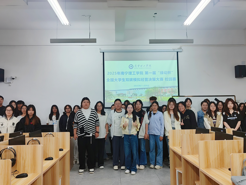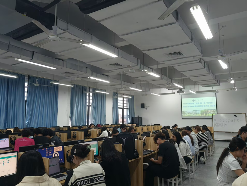 赛事由黄意津老师和王玉清老师具体负责组织与开展,吸引了全院学生的广泛关注和积极参与。来自商学院各专业的34支队伍,共计102名学子齐聚一堂,在模拟真实的“双碳”目标背景下,展开了一场智慧与策略的精彩较量。比赛现场气氛紧张有序,各参赛队伍需综合运用绿色经济、低碳管理、资源配置、可持续发展等知识,应对复杂多变的市场与环境场景,充分展现了选手们的专业素养、战略思维和团队协作能力。