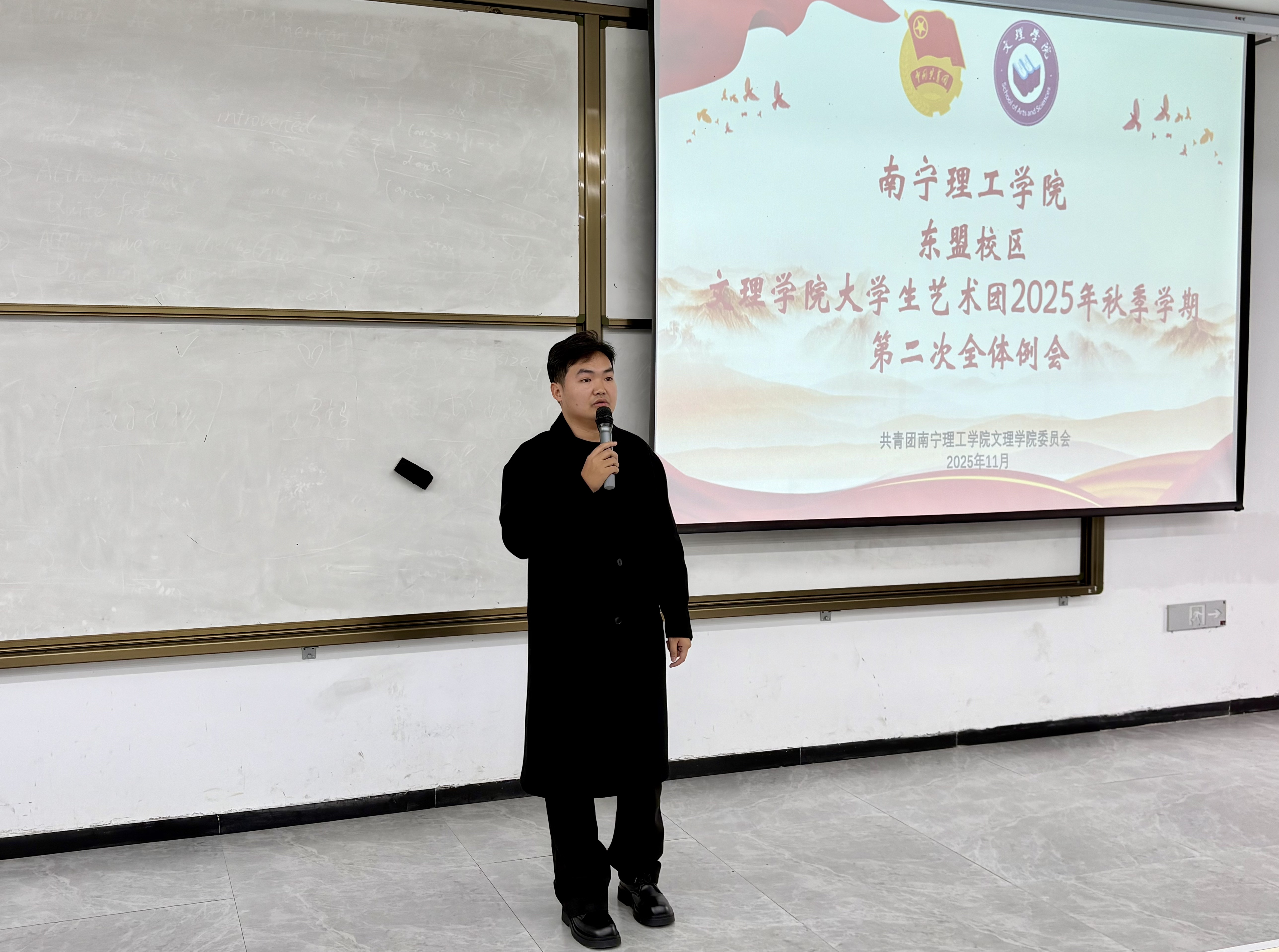 为全面复盘近期工作成效、凝聚团队发展共识,明确下一阶段前进方向,文理学院艺术团于11月5日12时在A3102阶梯教室召开近期工作汇报暨总结会议。文理学院团委书记仝广凯、艺术团指导老师黄兴及艺术团全体成员出席会议,共同为艺术团高质量发展建言献策。