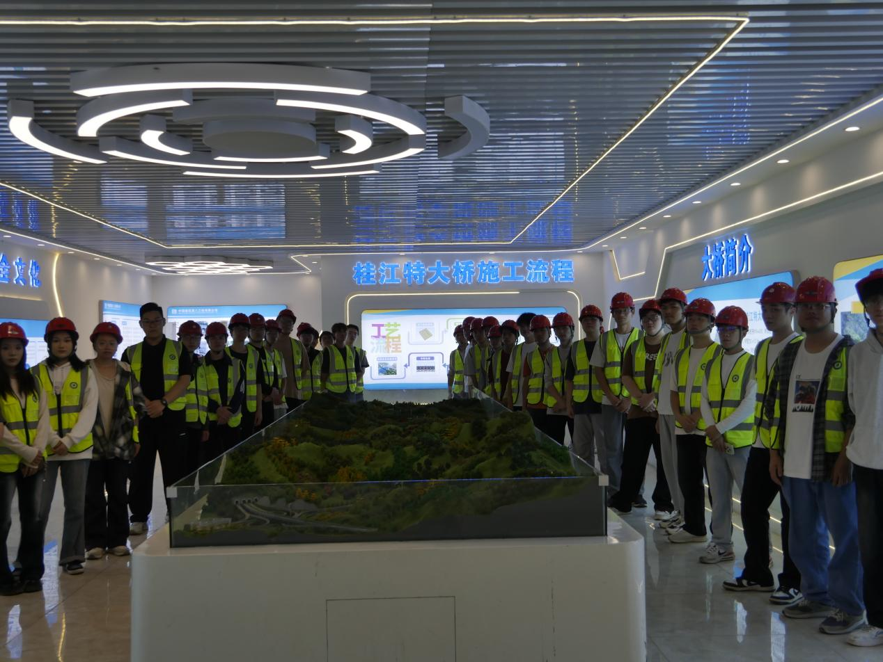 据了解,苍梧—昭平高速公路全长113.272公里,总投资197亿。全线设置桥梁41.1135公里/125座,隧道30.624公里/19座,互通立交9座,服务区2处,停车区3处,全线桥隧比67%。项目为典型的山区高速公路,技术难度大含量高,施工单位为中建八局集团有限公司。在为期两天的行程中,同学们还参观了项目沿线的沥青混凝土拌合站、特长隧道、路面施工、高大边坡支护、交通安全设施等,为同学们奉上了路桥隧的全集合大餐,有效弥补了课堂教学的实践短板。同学们纷纷表示,通过本次参观,不仅深化了对专业知识的理解,拓宽了行业视野,更坚定了学好专业、投身路桥行业的决心。