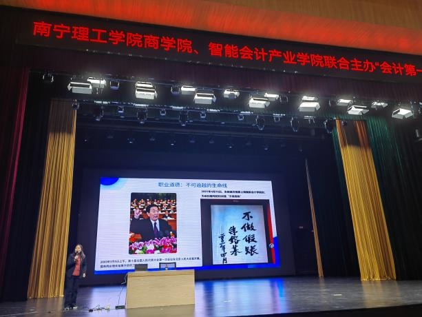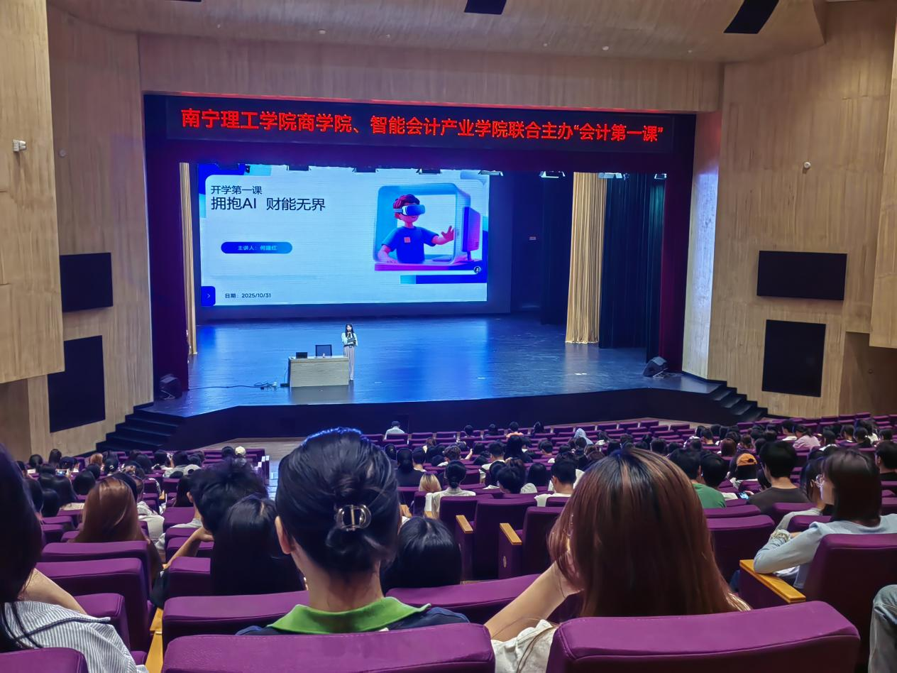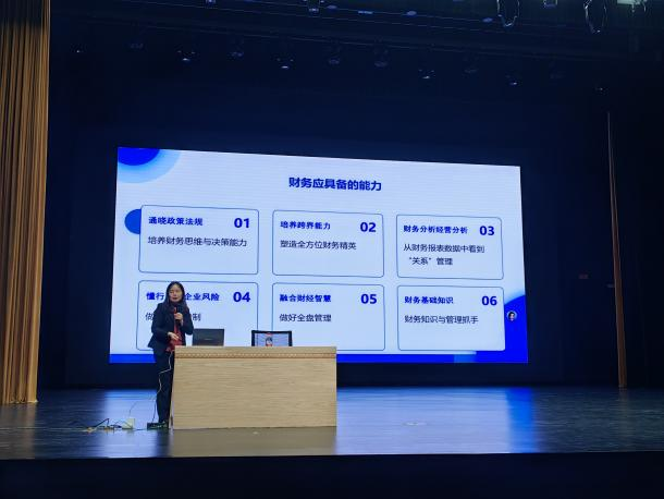 讲座邀请到知名上市公司独立董事及财务总监何建红教授担任主讲嘉宾。何教授以“拥抱AI,财能无界”为题,为初入财会殿堂的学子们带来了一场内容丰富、视野前沿的精彩分享。