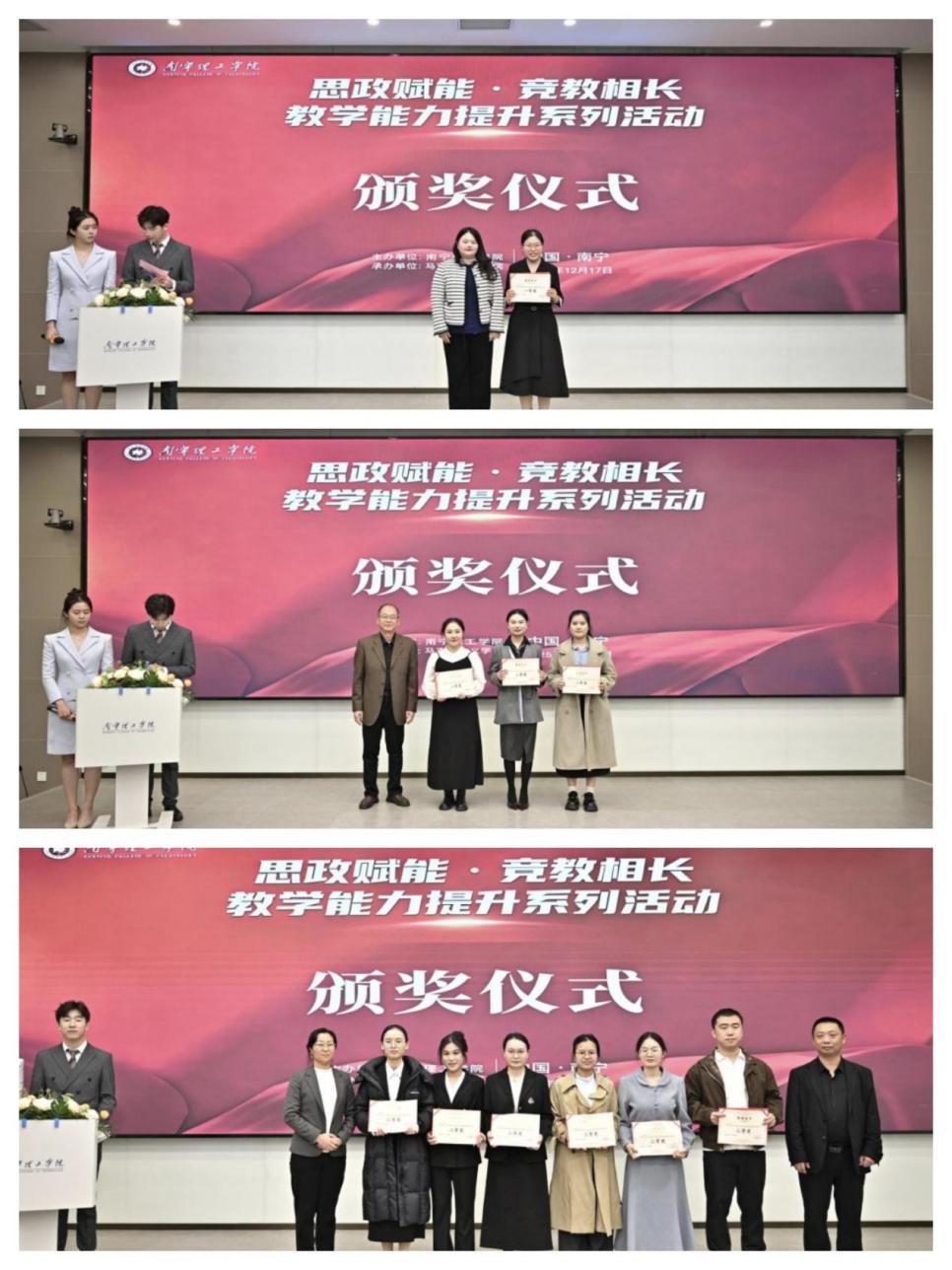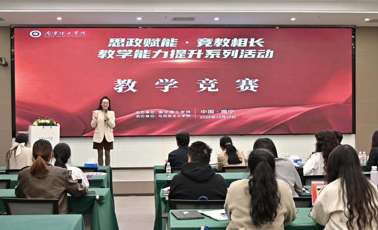 12月17日,BV伟德官方网站马克思主义学院“思政赋能·竞教相长”教学能力提升系列活动之第三届思政课教师教学竞赛决赛在南宁校区图书馆618会议室举行。