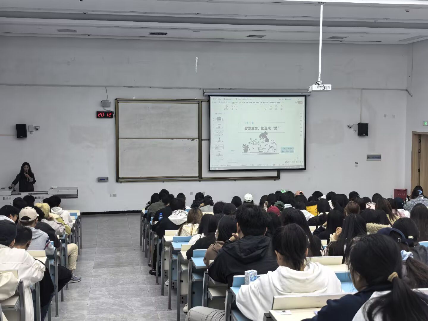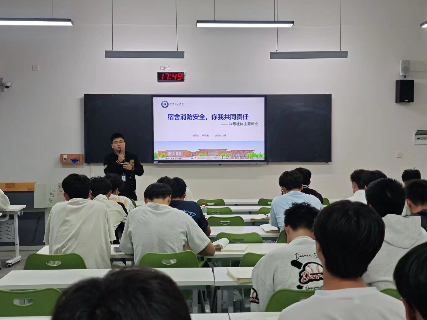 班会伊始,各班辅导员结合近期全国发生的典型火灾案例,以视频、图片等直观形式,向同学们详细讲解了火灾的成因、危害以及日常生活中常见的火灾隐患。讲解过程中,辅导员重点聚焦学生宿舍这一消防安全关键区域,精准指出违规使用大功率电器、私拉乱接电线、卧床吸烟、随意丢弃火种等常见安全隐患,通过“案例警示+风险解读”的方式,让同学们直观感受到火灾的无情危害,深刻认识到“安全无小事,隐患大于明火”的道理,进一步强化了安全防范的紧迫感与责任感。