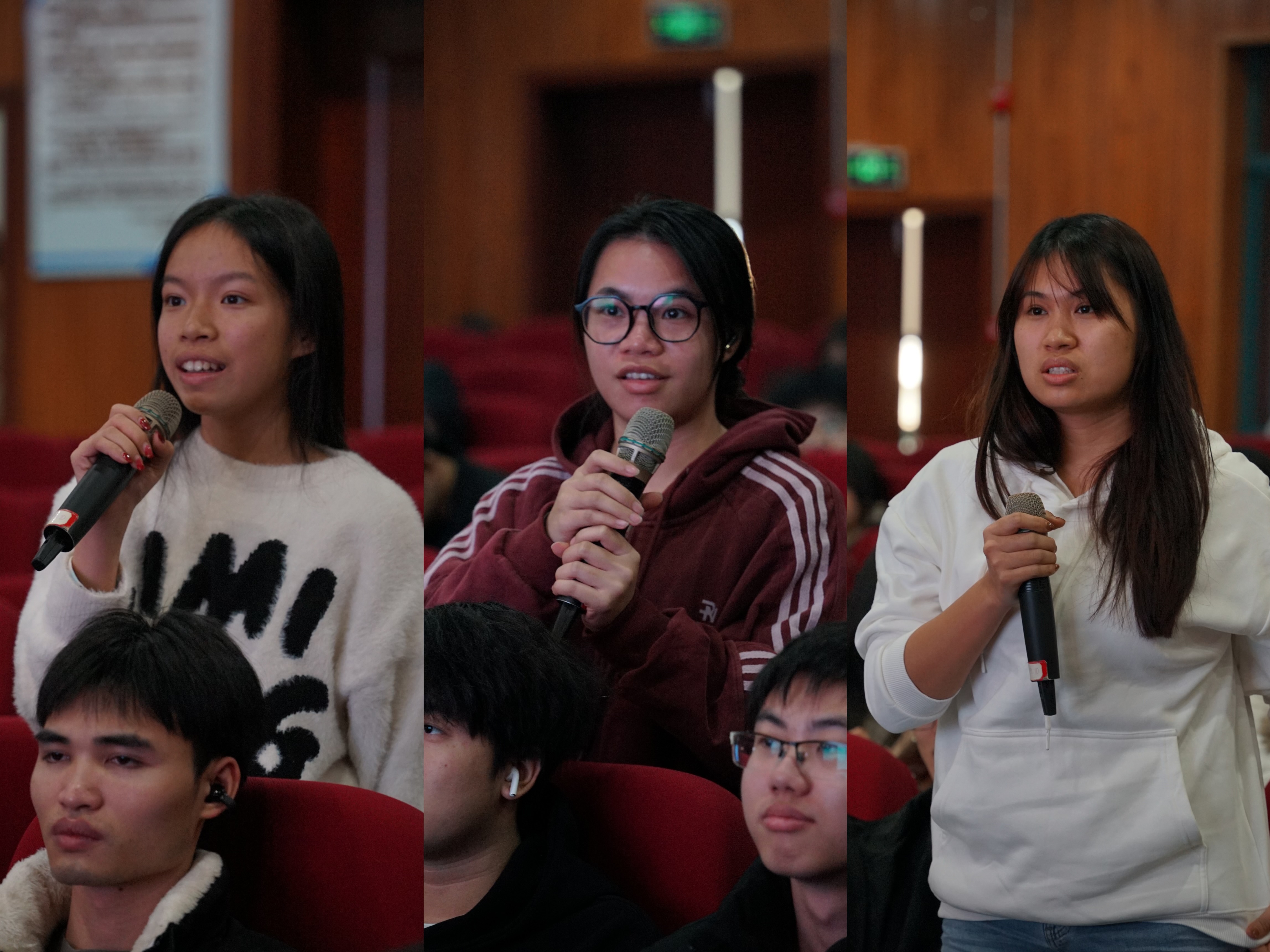 讲座现场氛围热烈融洽。张美玲女士以家长视角结合行业洞察,用平实生动的语言、鲜活具体的案例展开分享,瞬间拉近了与学子的距离,引发强烈共鸣。互动答疑环节,同学们围绕专业发展前景、能力提升重点、考研就业取舍等问题踊跃提问,张美玲女士与现场辅导员耐心细致地逐一解答,为学子们拨开成长迷雾,提供了切实可行的建议。这种“身边人讲身边事、过来人传经验经”的分享形式,让榜样力量更显可亲、可感、可学,有效增强了分享内容的说服力与感染力。