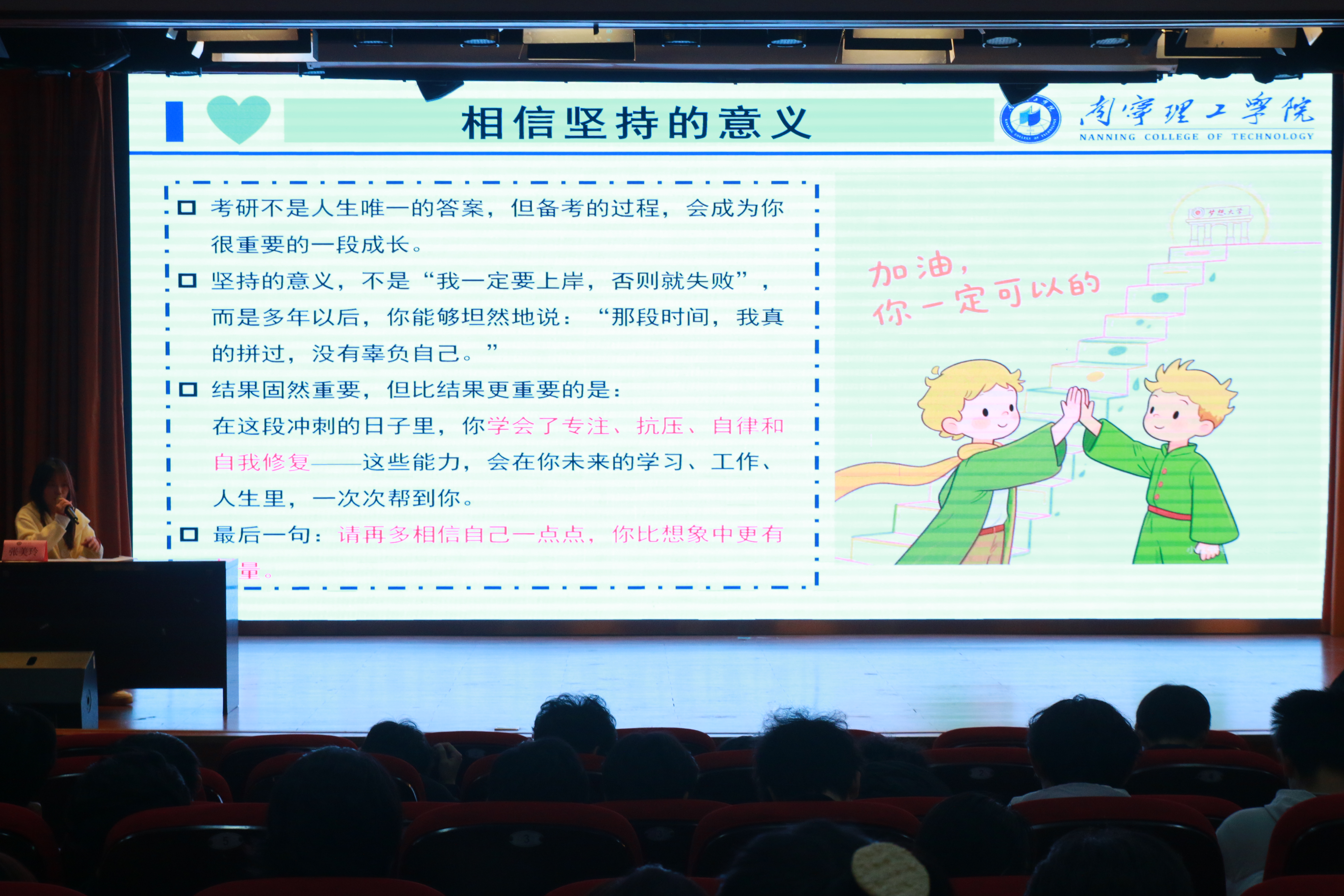 讲座聚焦学子最关切的考研与就业核心需求,精心设置五大核心分享板块,内容兼具针对性与实用性:一是直击成长痛点,系统梳理大二、大三阶段需直面的考研与就业抉择困境,客观剖析两类发展路径的适配人群特征,帮助学子摆脱迷茫犹豫;二是解读双轨竞争力,结合AI、云计算、网络安全等IT行业热门领域发展趋势,深入剖析“学历提升+技能强化”的双重发展逻辑,助力学子找准个人定位;三是拆解考研全流程,从择校策略、备考资料筛选、科学时间规划,到政治、英语、专业课的高效复习方法,全方位输出备考干货;四是明晰就业赛道,系统梳理IT行业四大核心就业方向,针对性给出硬技能打磨与软技能提升建议,并附赠求职时间线规划及行业高频考点解析,为学子求职之路保驾护航。