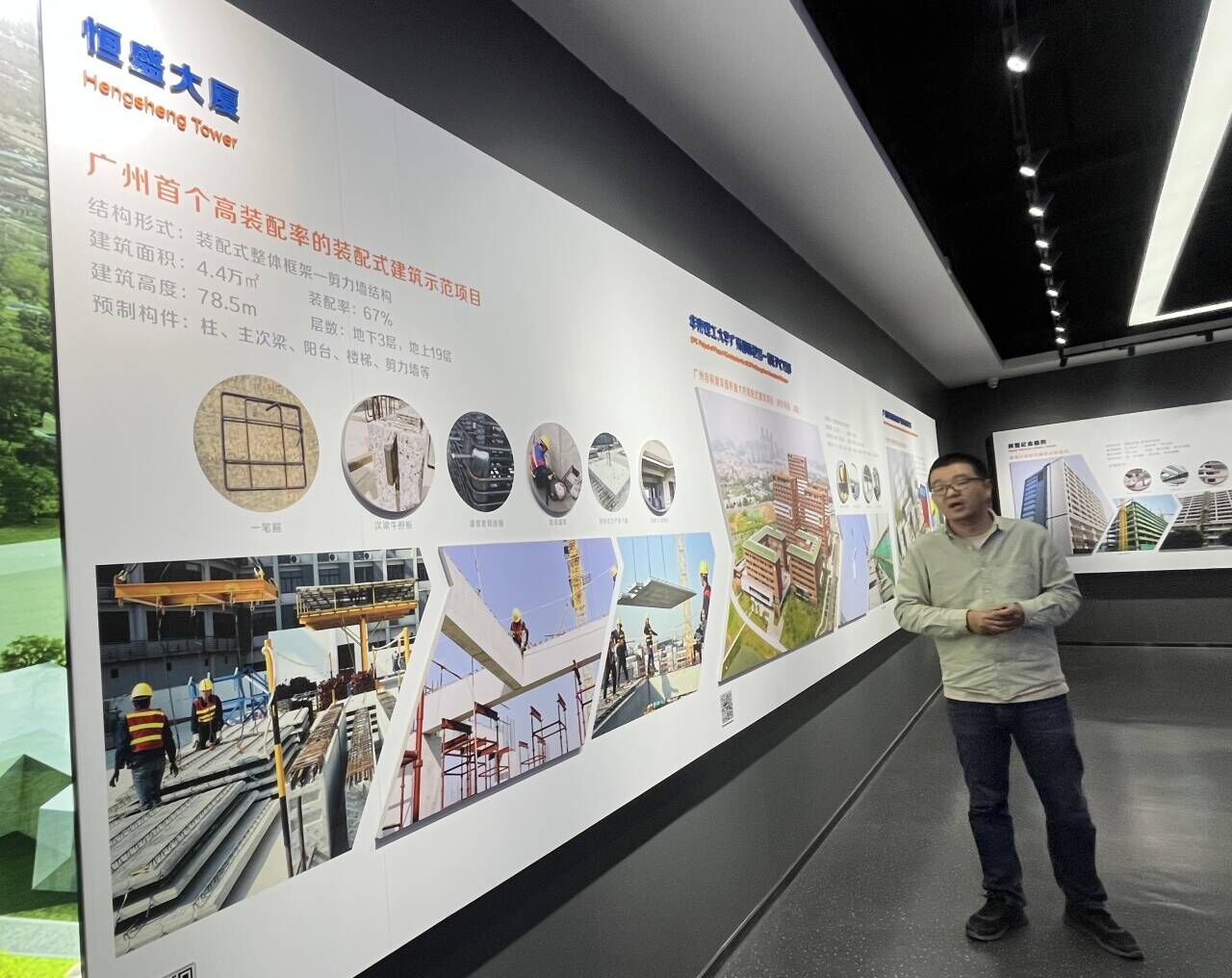 交流期间,湾区智造研发部技术副经理张亚飞全程陪同,带领鲁金金院长一行参观了企业装配式建筑展示中心、智能化生产车间及技术研发实验室。在展示中心,张亚飞副经理结合实体构件与数字化模型,系统介绍了企业在装配式建筑领域的战略布局、核心业务及行业影响力——作为粤港澳大湾区装配式建筑产业的标杆企业,湾区智造已构建起“设计标准化、生产工厂化、施工装配化、运维智能化”的全产业链服务体系,年产能达15万立方米预制构件,服务覆盖珠三角及北部湾经济区重点工程。