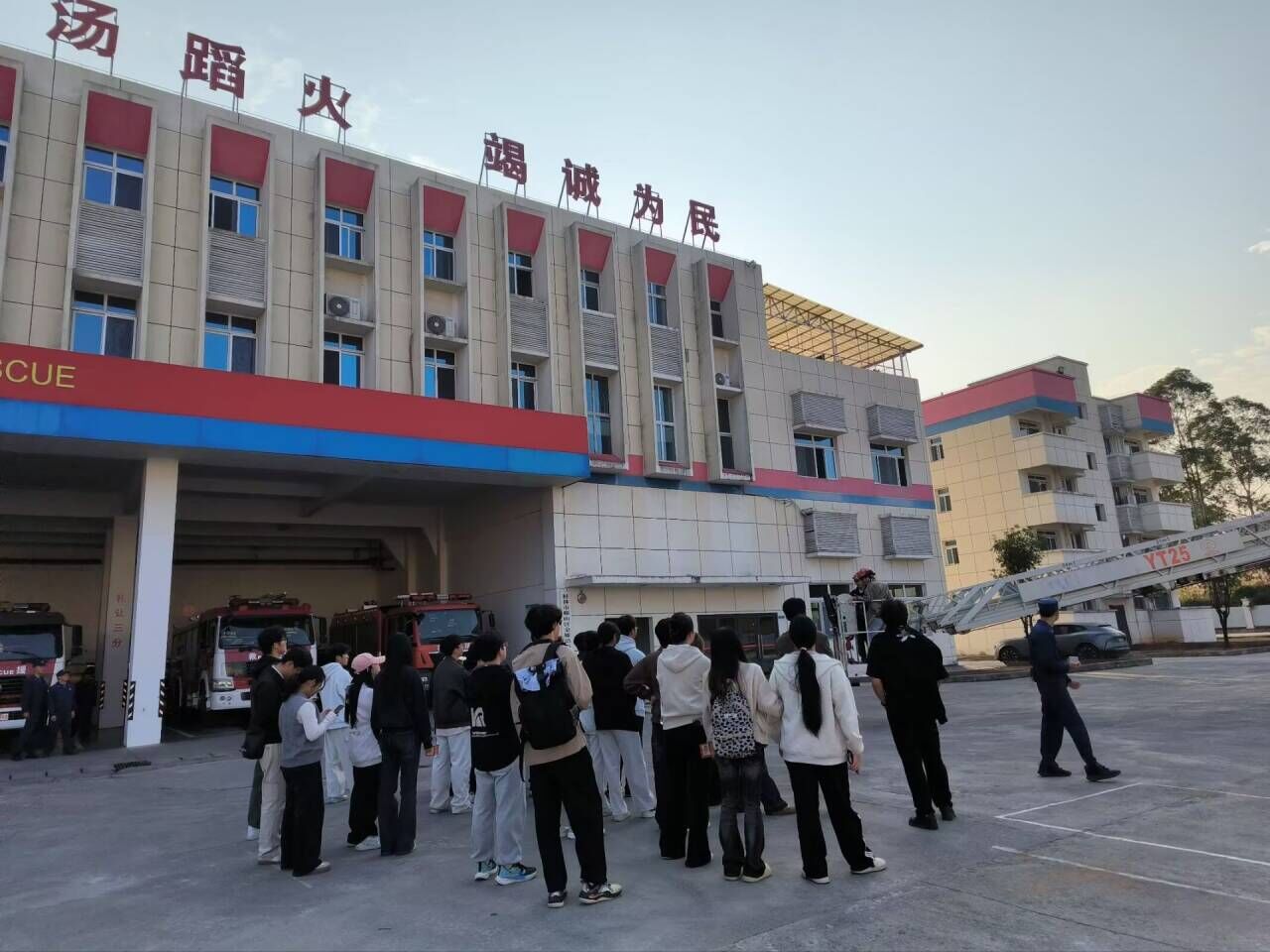 在消防指战员的引导下,学员们先后参观学习了消防救援知识视频、消防车库、器材装备室等区域。指战员详细讲解了各类消防车、破拆工具、防护装备的功能与使用方法,并现场演示了水带连接、消防服穿法、灭火器操作等基础消防技能。并且学员们在指战员的指导下穿上了消防队服、学习了灭火器的使用方法以及登上了救援云梯。大家都踊跃参与了实操体验,在专业指导下掌握了初期火灾扑救和应急疏散的核心技巧。
