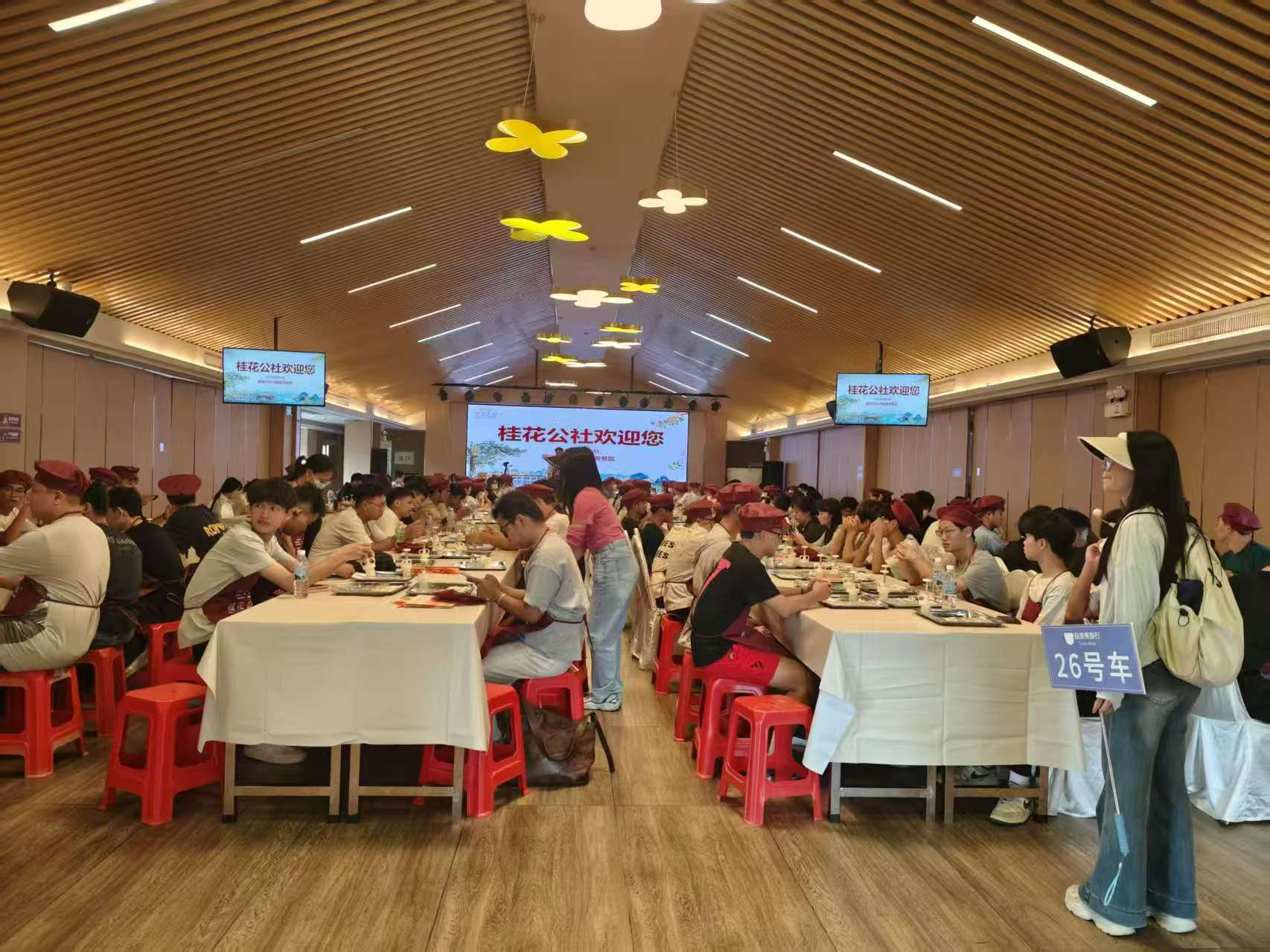 在桂花公社,通过沉浸式体验厅,结合视觉、听觉、嗅觉全方位展现了桂林满城桂花开时的场景,讲述了桂林桂花的故事。在这里同学们还体验了桂林特色传统美食桂花糕的制作。