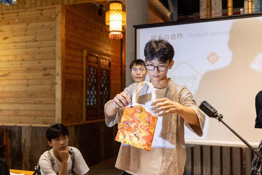 在大圩古镇,踏着石板路漫步在古镇老街,两旁的老房子诉说着一个又一个古老的故事。相思小镇的少数民族风情和中国特色建筑让人流连忘返,研学学生在导师的带领下还学习体验了水拓帆布包。“每一个包都是独一无二的!”,同学们纷纷感叹道,文化自信油然而生。