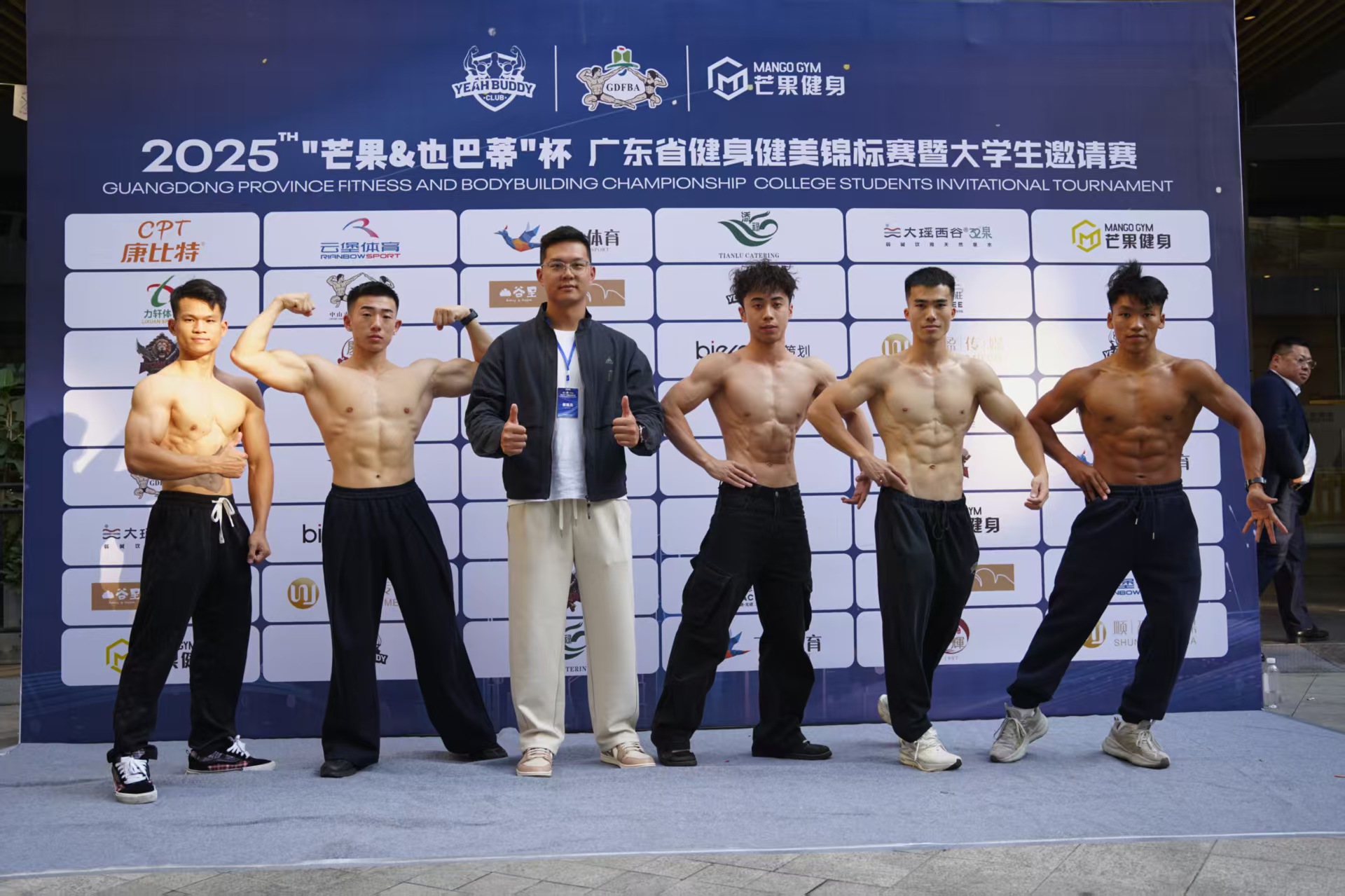 近日,2025年广东省健身健美锦标赛暨大学生邀请赛在广州圆满落幕。在曹宇航老师的带领下5名体育专业学生参加比赛,凭借卓越的肌肉形态、精湛的舞台表现和科学的竞技状态,在强手如林的赛场中脱颖而出,共斩获高校男子古典健美171cm(含)以下组第二、三名,高校男子传统健美组第四名、高校男子健体A组组第六名等多项优异成绩,充分展现了学校在应用型体育人才培养,特别是在健身健美专项教学与实践领域的扎实成果。此次比赛的参加得到了BV伟德官方网站新活力体育产业学院全程支持。