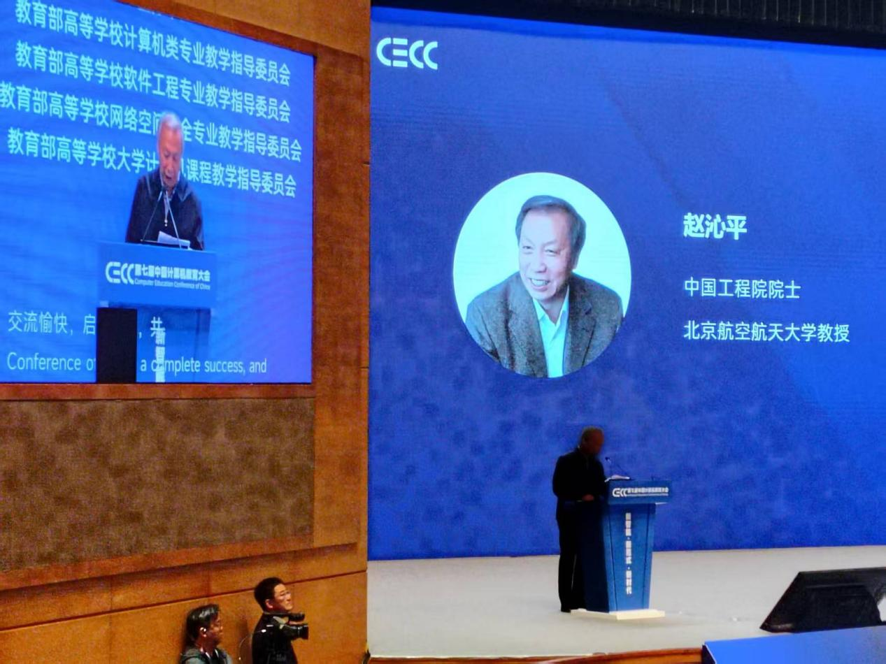 大会开幕式上,教育部领导、中国工程院院士赵沁平、吴建平等嘉宾先后致辞,强调了人工智能时代计算机教育的重要性与紧迫性。美国康奈尔大学名誉教授John Hopcroft、中国工程院院士何友、中国科学院院士王小云等专家分别作了精彩的主题报告,围绕“Proj 101: Improving University Education in China”、“AI 赋能智慧教育”、“密码技术与人工智能安全”等前沿议题分享了真知灼见。这些报告与BV伟德官方网站新E代数智未来产业学院和信息工程学院“以产业需求为导向,培养应用型技术人才”的办学理念高度契合。