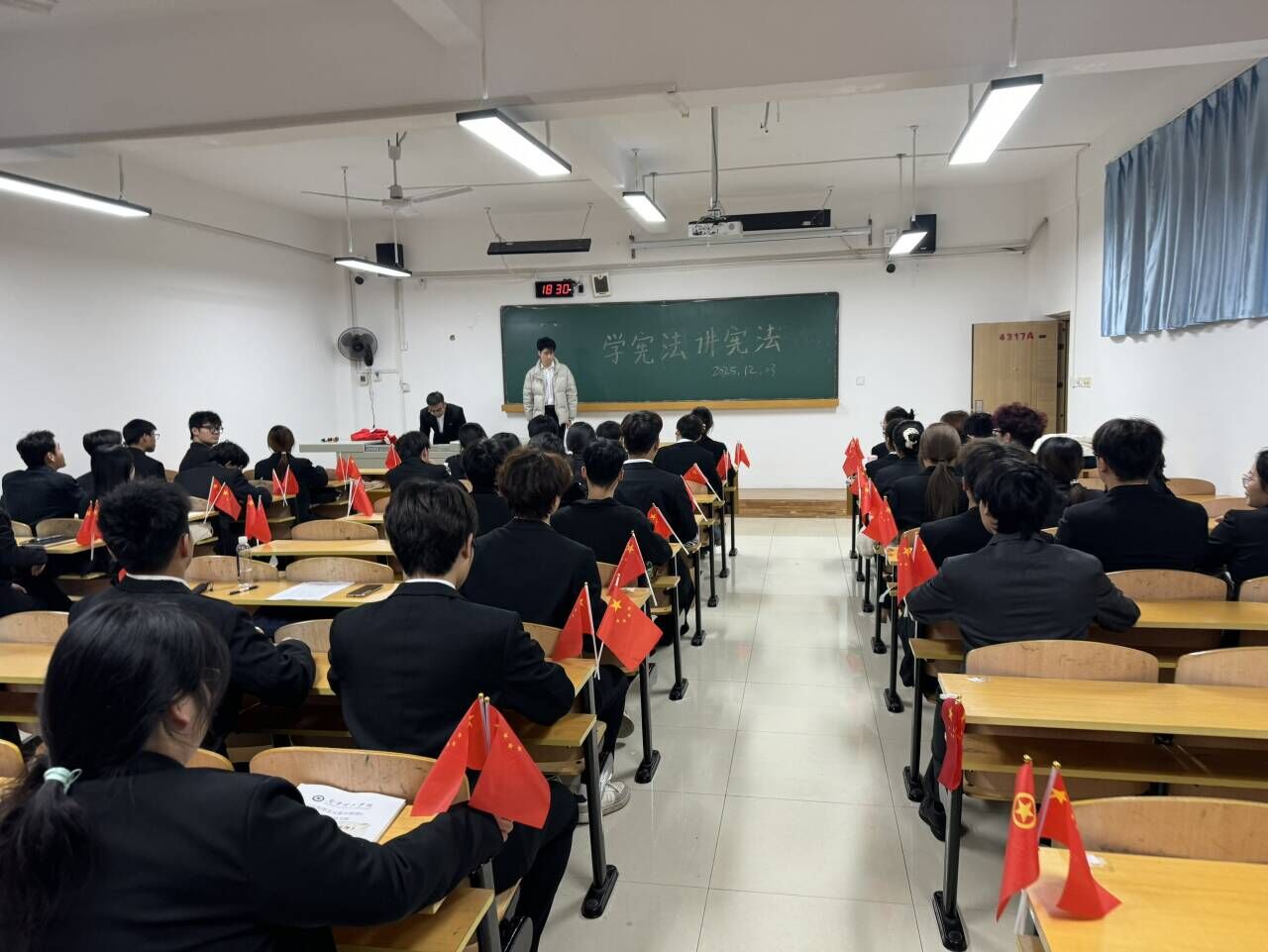 12月3日,“学宪法讲宪法”宪法晚读活动在4317教室顺利举办。作为2025年“12·4”国家宪法日暨宪法宣传周的重点实践,活动以青马班同学为核心参与群体,紧扣自治区司法厅“沉浸式宪法宣传”要求,打造了兼具思想性与仪式感的法治教育场景。