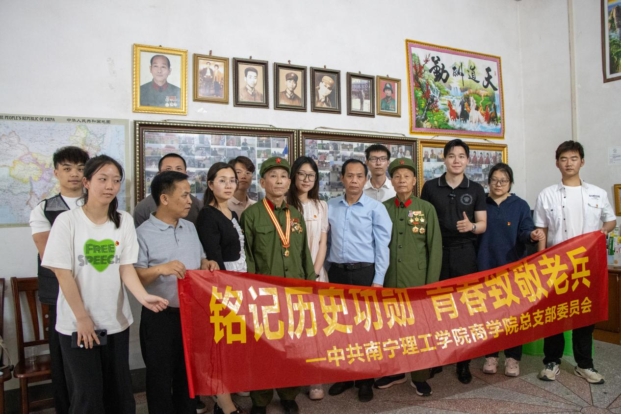 为传承红色文化,铭记历史功勋,中共BV伟德官方网站商学院总支部委员会于2025年4月26日前往河池市大化县县城慰问老兵,师生代表们向这些为国家和人民奉献青春与热血的老兵们致以最诚挚的敬意和最温暖的问候。