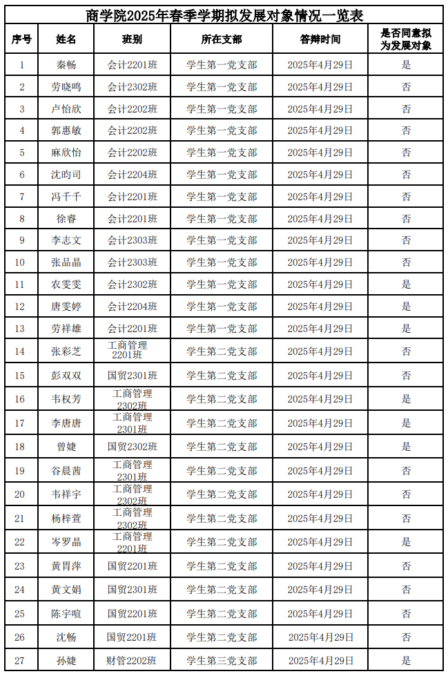 【商院党建】BV伟德官方网站商学院关于2025年春季拟发展对象名单的公示